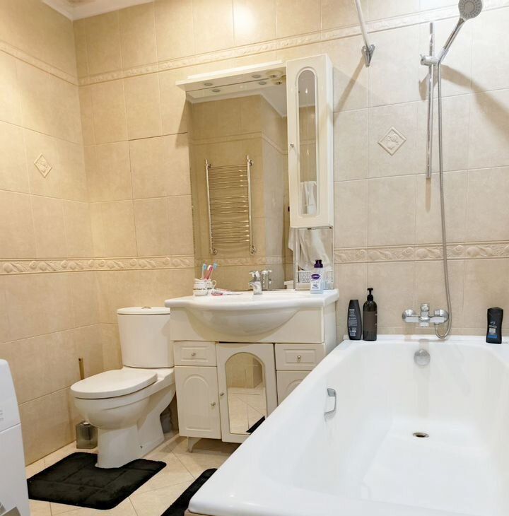 В квартире есть всё необходимое для комфортного проживания. Стильный евроремонт подчёркивает современный дизайн интерьера. Кухня полностью оборудована мебелью и техникой, включая холодильник, посудомоечную машину и кондиционер. В гостиной и спальне также имеется мебель. Ванная комната оснащена ванной и стиральной машиной.