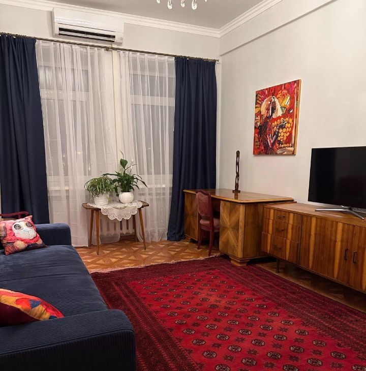 Сдается просторная (65 кв. м) двухкомнатная ( 15 кв.м и 21 кв.м) квартира с изолированными комнатами в 5 минутах пешком от метро в сталинке, построенной по индивидуальному проекту. Высота потолков 3 метра. Дом многоуровневый, высокий второй этаж (на первом этаже шоу-рум с высотой потолков 5 метров).
