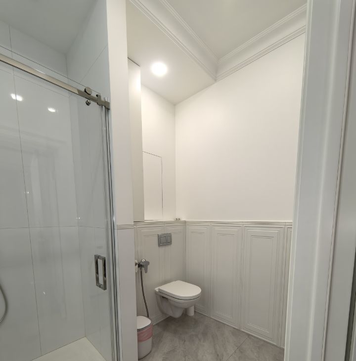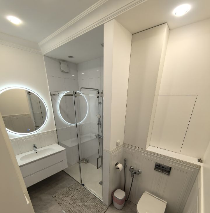 Совмещённый санузел с современной душевой кабиной