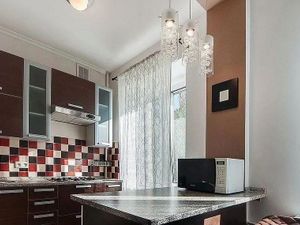 Квартира с евроремонтом: современный интерьер, качественные экологичные отделочные материалы. В комнатах дубовый паркет, на остальной территории кафельная плитка. В ванной подогреваемый пол. В комнатах и на кухне есть вся необходимая мебель (включая вместительные встроенные шкафы с раздвижными зеркальными дверями и конструктивным наполнением), газовая плита, электрическая духовка, столовые и кухонные принадлежности, гладильная доска, новые подушки, а также кардио-тренажер. Из техники — кондиционер, холодильник, 2 телевизора, стиральная машина, кофе/чае-варка, электрочайник, свч-печь, пылесос, робот-пылесос. Санузел совмещённый, оборудован ванной и гигиеническим душем. В квартире также есть балкон с раздвижным остеклением, где можно насладиться свежим воздухом.
