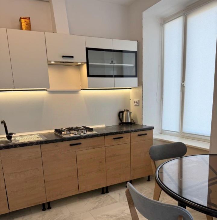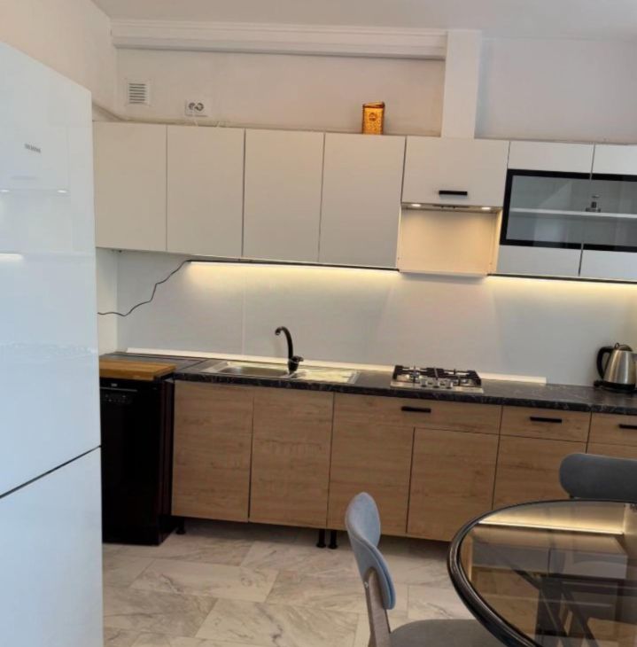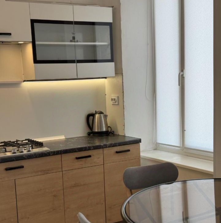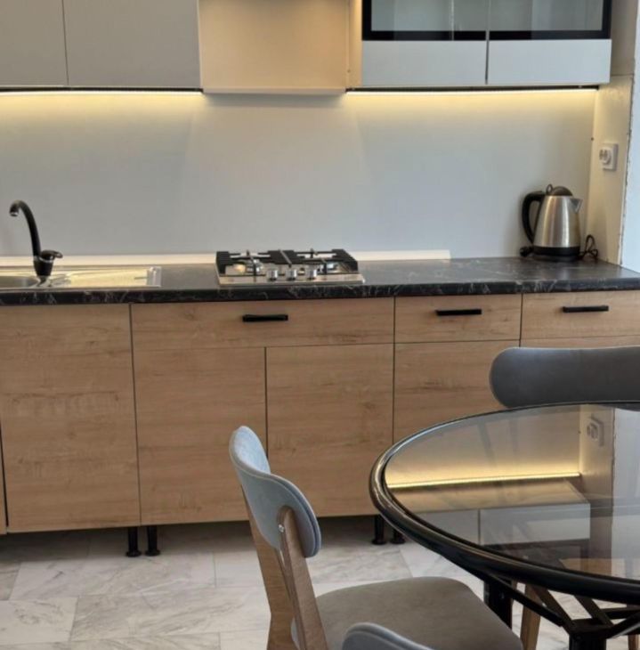 Квартира с евроремонтом, полностью готова к проживанию. На кухне и в комнате есть вся необходимая мебель. В ванной комнате установлена душевая кабина. Из техники: кондиционер, холодильник, посудомоечная и стиральная машины, телевизор. Также есть интернет и мусоропровод.
