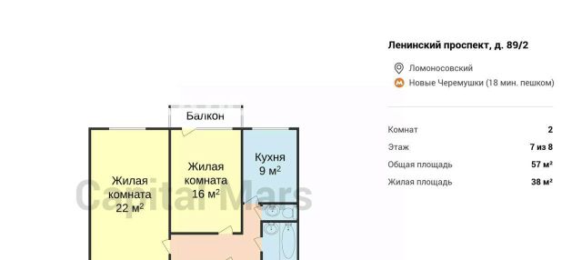 2-к кв. Москва Ленинский просп., 89/2 (57.0 м²)