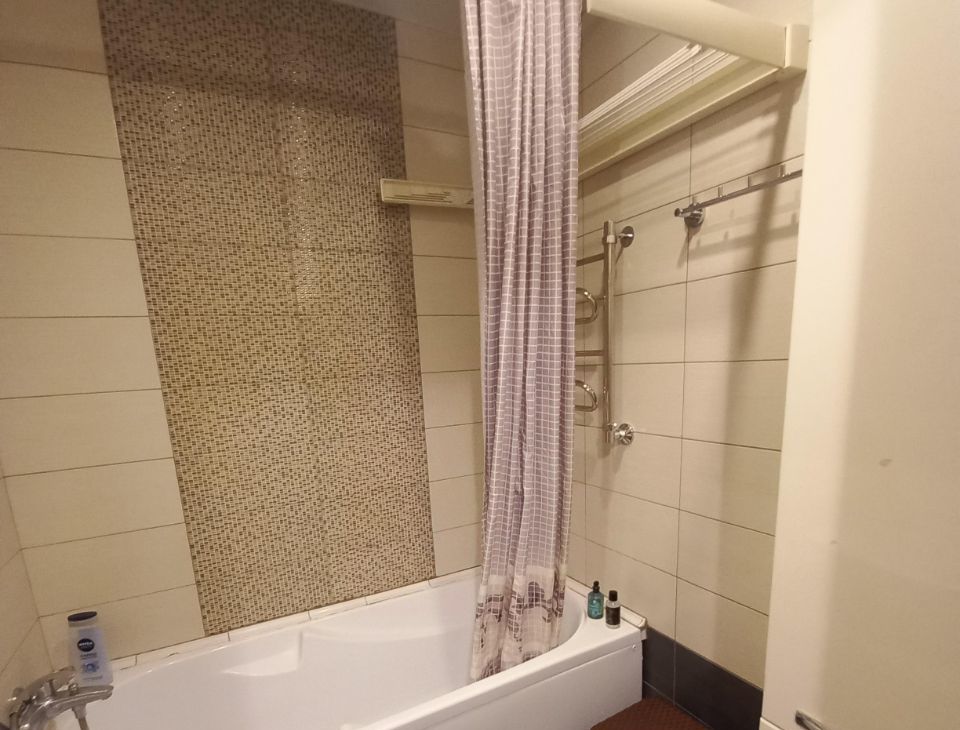 Раздельный санузел с ванной. Имеется водонагреватель - в период планового отключения горячей воды (летом на 10-12 дней, как по всей Москве) у вас всегда горячая вода будет.