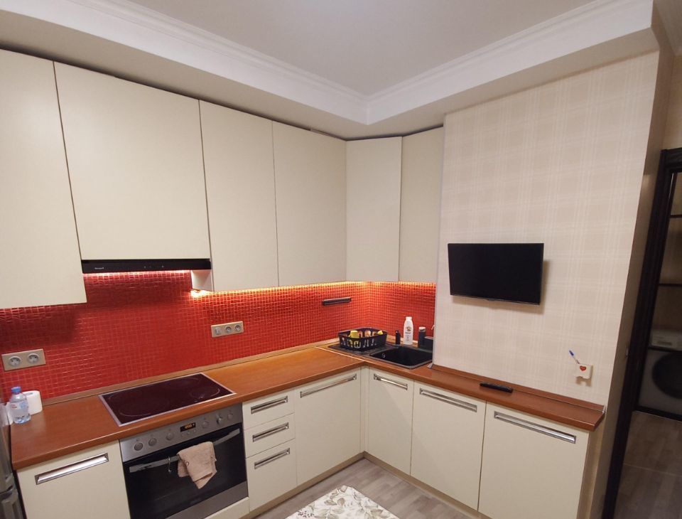 - бытовая техника (варочная панель, вытяжка, духовой шкаф, холодильник, посудомоечная машина, телевизор),