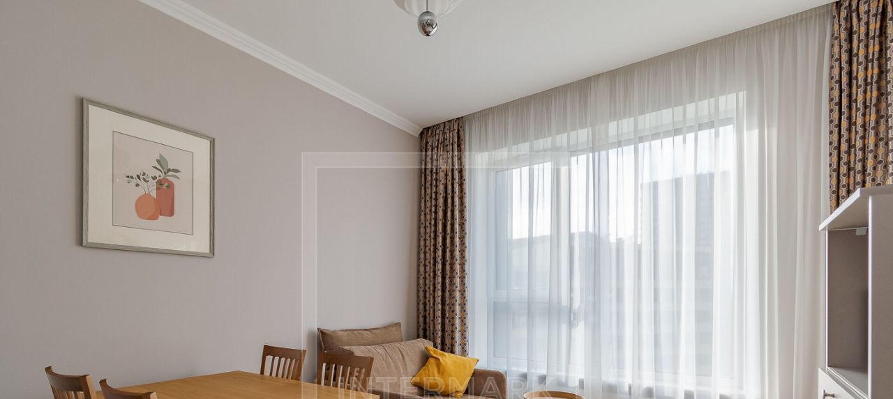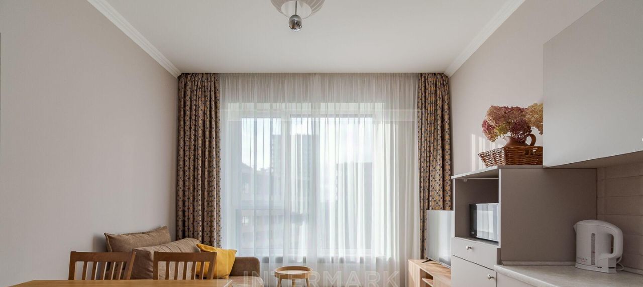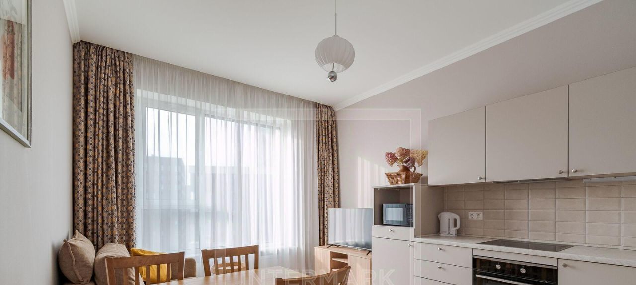 ID 46808. Современная светлая 2-комнатная квартира на 11 этаже нового ЖК бизнес-класса Alia 2022 года постройки! Квартира с новым ремонтом. В комнатах и на кухне есть вся необходимая мебель. Из техники в вашем распоряжении: холодильник, чайник, утюг, пылесос, посудомоечная и стиральная машина, СВЧ, а также телевизор, 2 кондиционера. Подключен высокоскоростной интернет. Общая площадь: 70 кв. м. Планировка: просторная оборудованная кухня, 2 спальни, гардеробная, ванная комната и гостевой туалет, застекленная лоджия. Высота потолков — 2,9 метра. Окна выходят как на улицу, так и во двор. Дом оборудован как пассажирским, так и грузовым лифтами. Закрытый двор без машин, консьерж. Машино-место в подземной парковке можно арендовать за дополнительную плату. Комплекс находится на берегу Москвы-реки, в пяти минутах от метро "Спартак". В пешей доступности от дома находится средняя школа с углубленным физико-математическим уклоном.