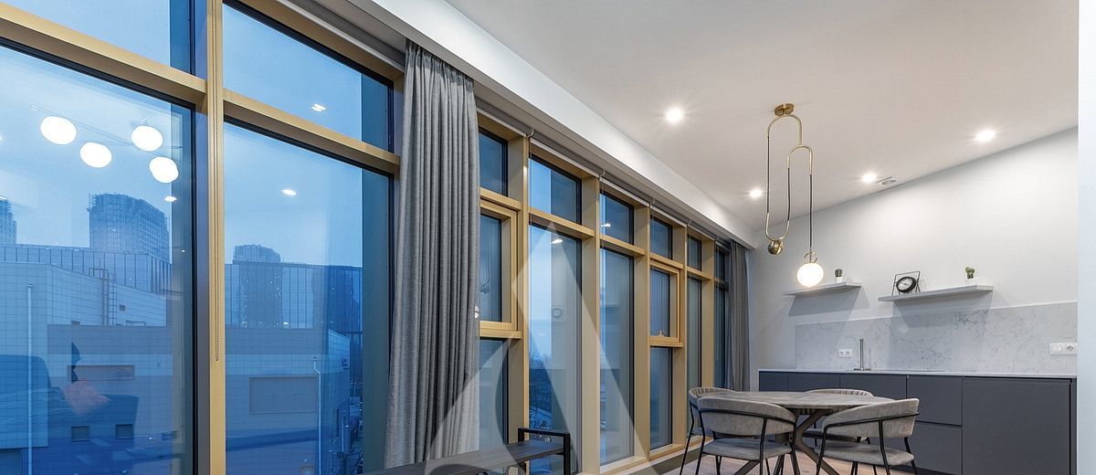 Панорамное остекление (окна открываются). Виды в закрытый, тихий двор.