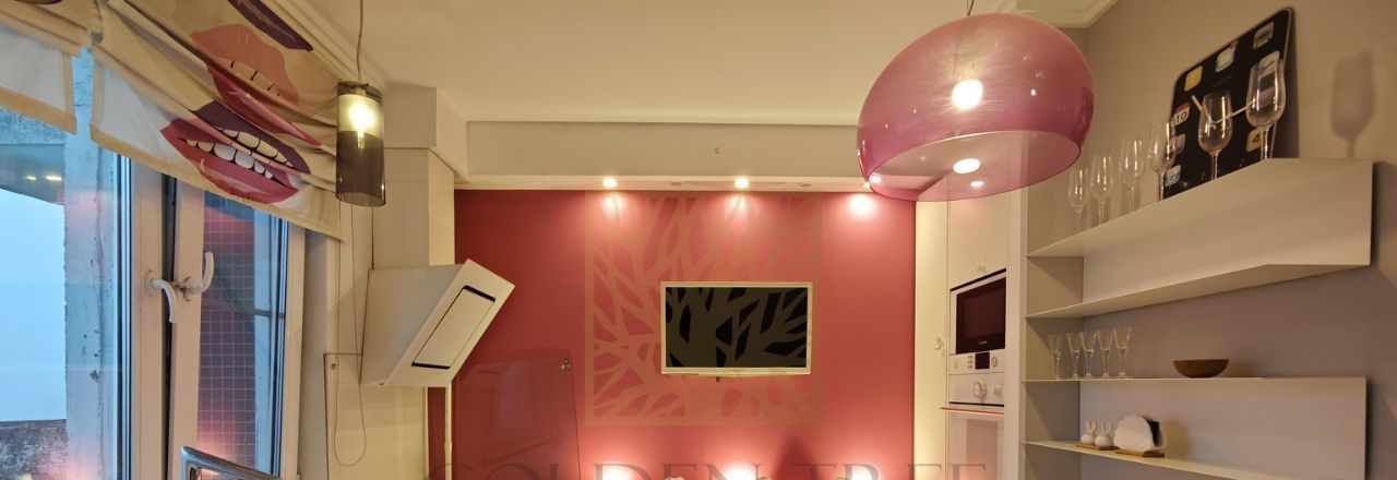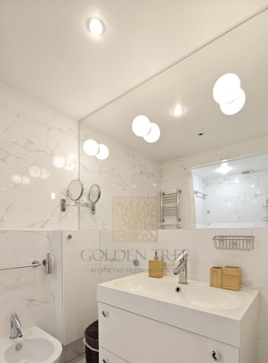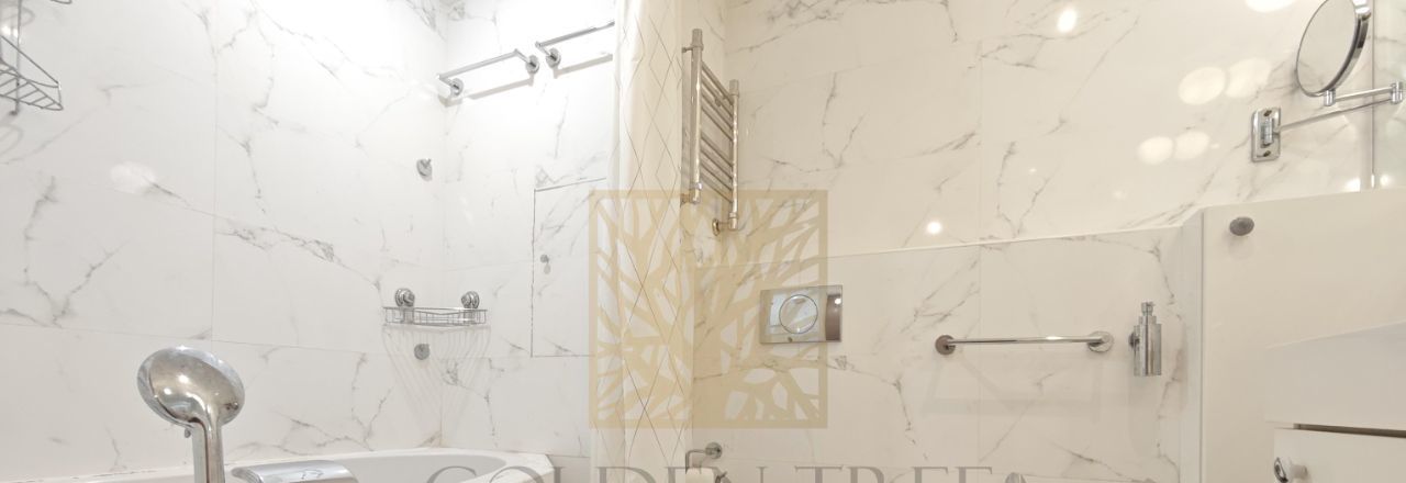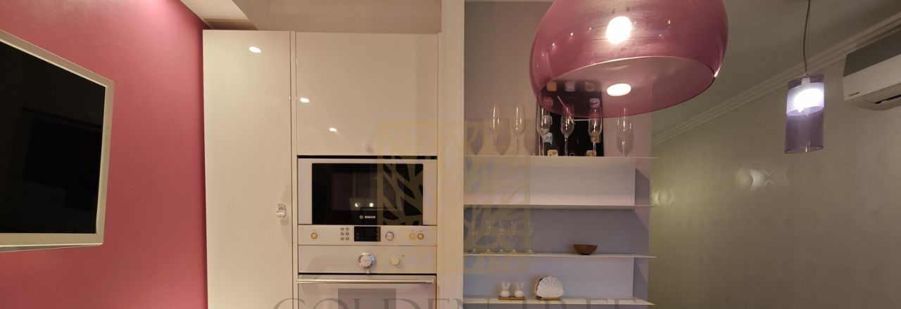 В квартире вся необходимая мебель и техника: микроволновая печь, духовой шкаф, холодильник, телевизор, посудомоечная и стиральная машины. Вся необходимая мебель есть как на кухне, так и в комнатах. Большой и очень вместительный гардероб, полноценная двуспальная кровать, раскладывающийся диван, вместительный шкаф в прихожей. Несмотря на размеры, в квартире есть всё и при этом не тесно. Просторная ванная комната с большой ванной, зеркалом во всю стену и биде.