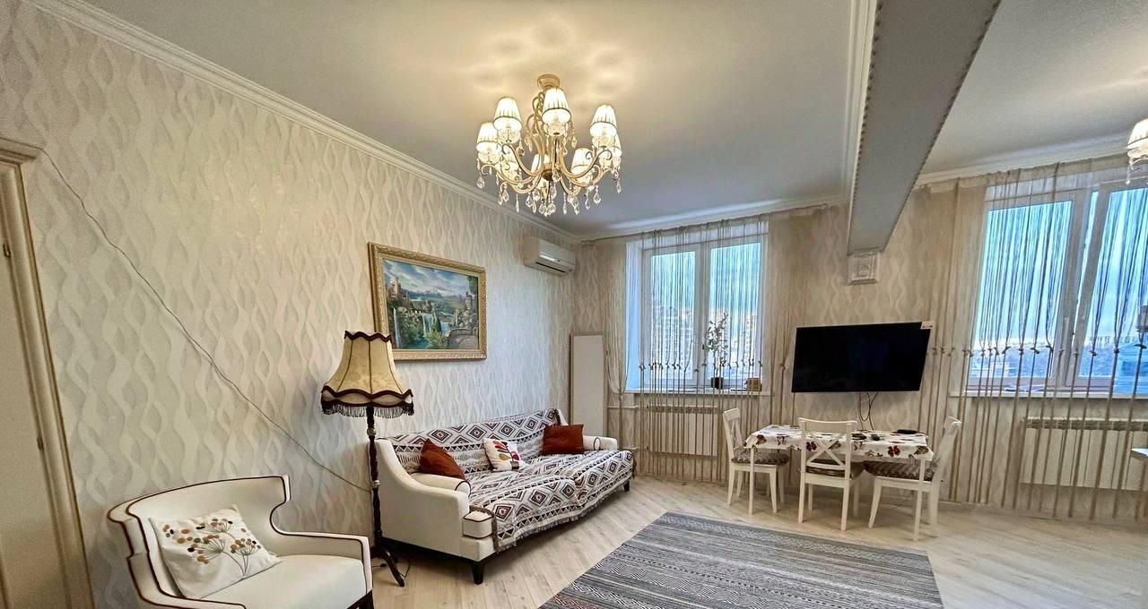 В квартире сделан дизайнерский ремонт, что позволяет наслаждаться стильной и современной обстановкой. Высокие потолки (3 метра) добавляют ощущения простора. На кухне есть вся необходимая мебель и техника: холодильник, посудомоечная машина, стиральная машина, а также кондиционер и телевизор для вашего удобства. Ванная комната оборудована ванной, а санузел — отдельный. Балкон выходит на улицу, что позволяет наслаждаться видом на Москву сити, МГУ И Большой цирк.