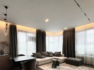 Система кондиционирования воздуха- сплит, встроенные конвекторы в полу для обогрева, телевизоры в каждой комнате и прочая мелкая бытовая техника, система умного дома- шторы, свет и пр. - обеспечивают комфорт и удобство.