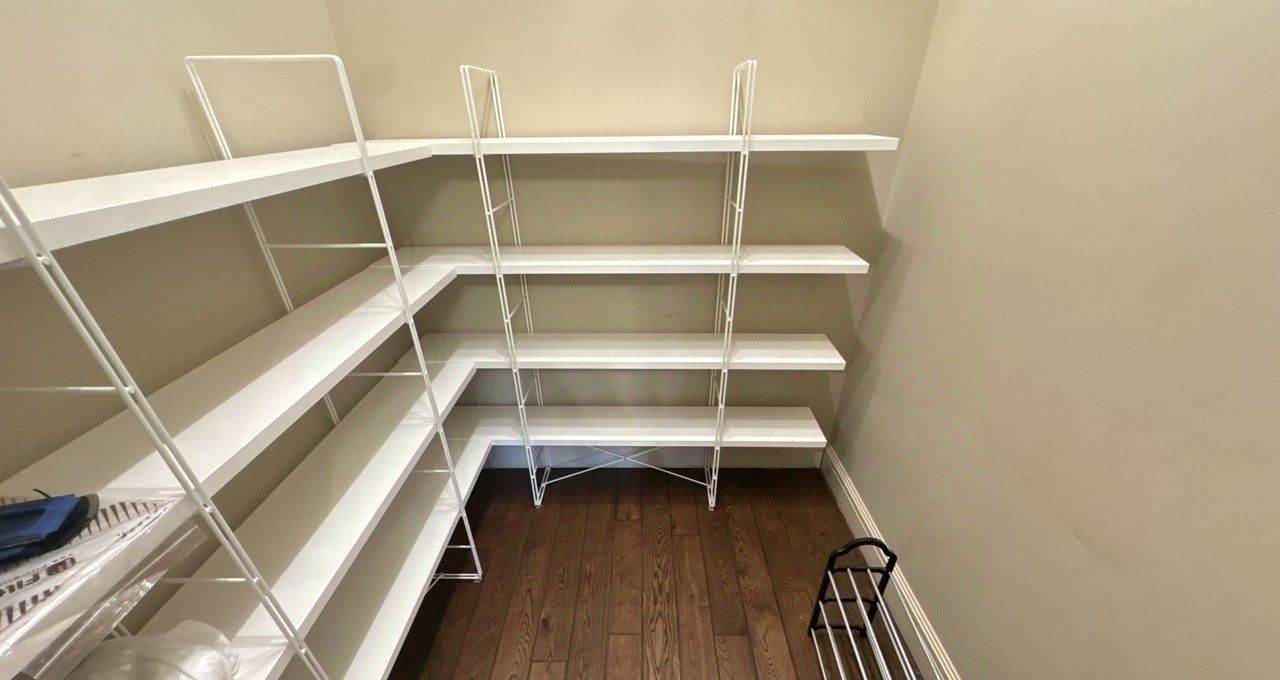 Много мест для хранения: большой встроенный шкаф с антресолями + отдельная гардеробная