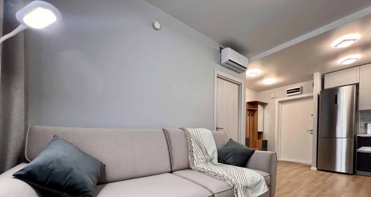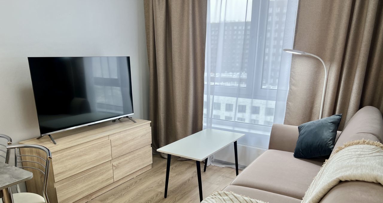 В гостиной телевизор 52" QLED Smart и большой раскладной диван, в спальне - кровать с хорошим матрасом, большой шкаф для одежды.