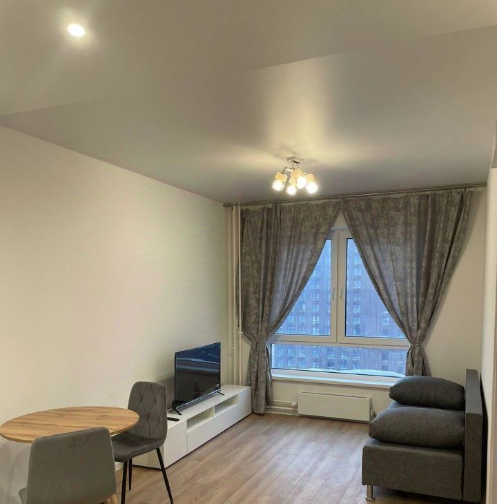 Сдаётся современная евро-однокомнатная квартира с продуманной планировкой на 21 этаже: уютная спальня + просторная кухня-гостиная.