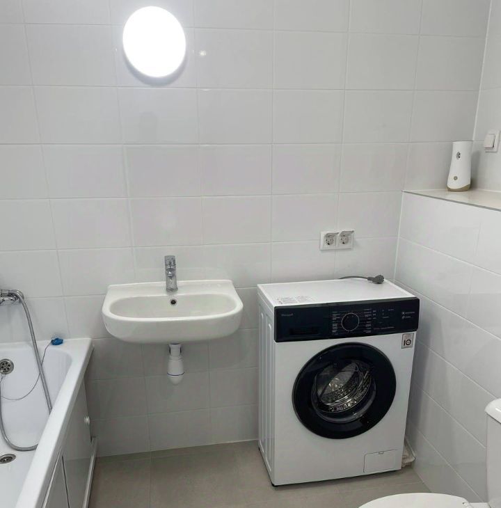 Квартира оборудована кухонным гарнитуром, мебелью и бытовой техникой. Есть: