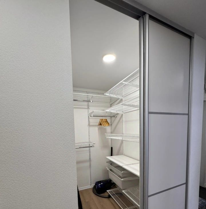 Хранение: Отдельная гардеробная комната + гардеробная в спальне.