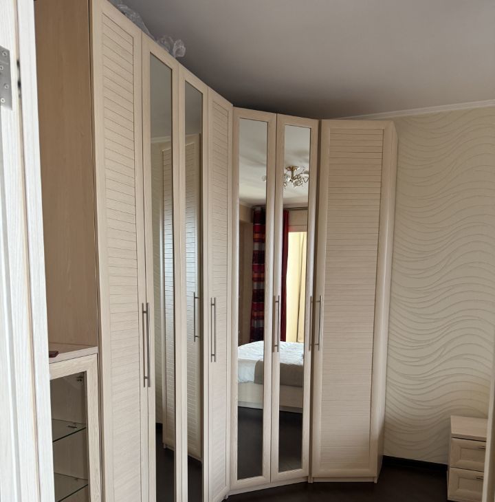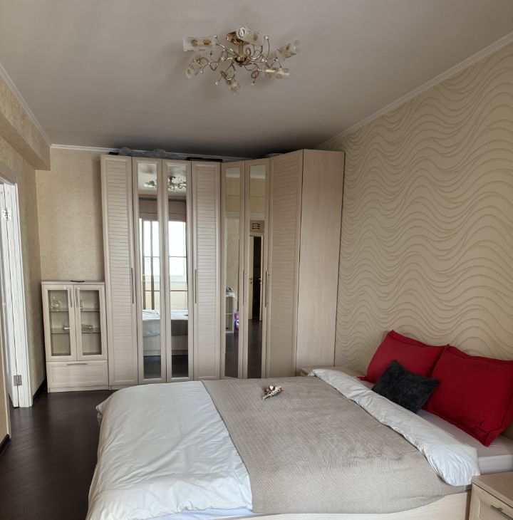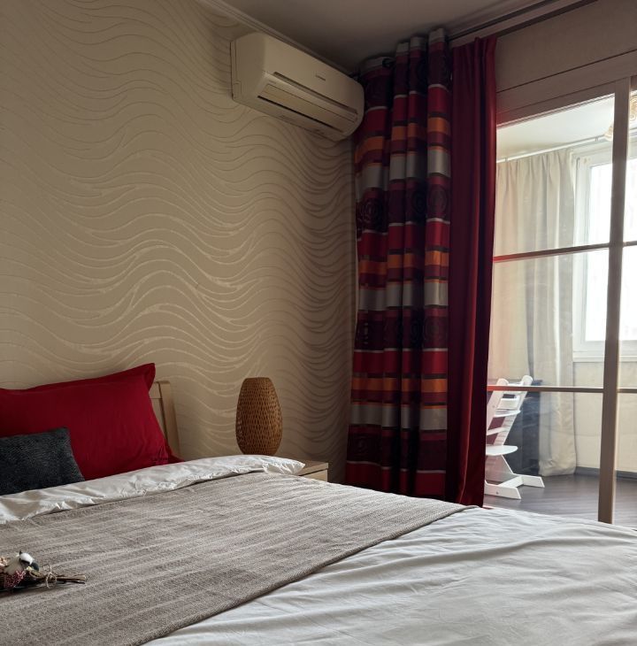 Просторная спальня. Кровать со спальным местом 160*200. Лоджия с теплым полом, оборудованная под кабинет. Плотные шторы блэкаут . Большой очень удобный и вместительный шкаф!