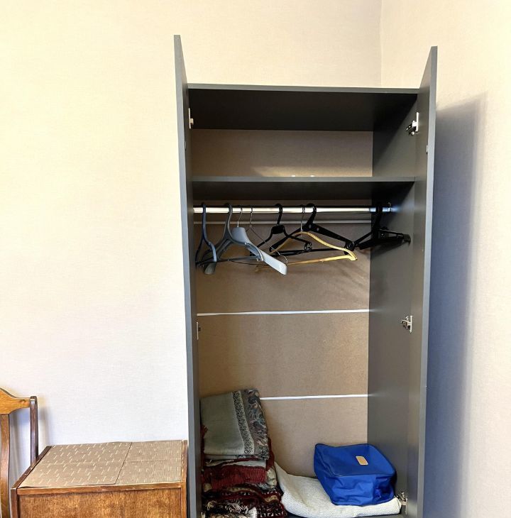 Квартира с косметическим ремонтом, полностью меблирована: кухонный гарнитур, холодильник, стиральная машина, много платяных шкафов, встроенный шкаф в прихожей, двуспальная кровать, двуспальный диван, софа, кресло, телевизор.