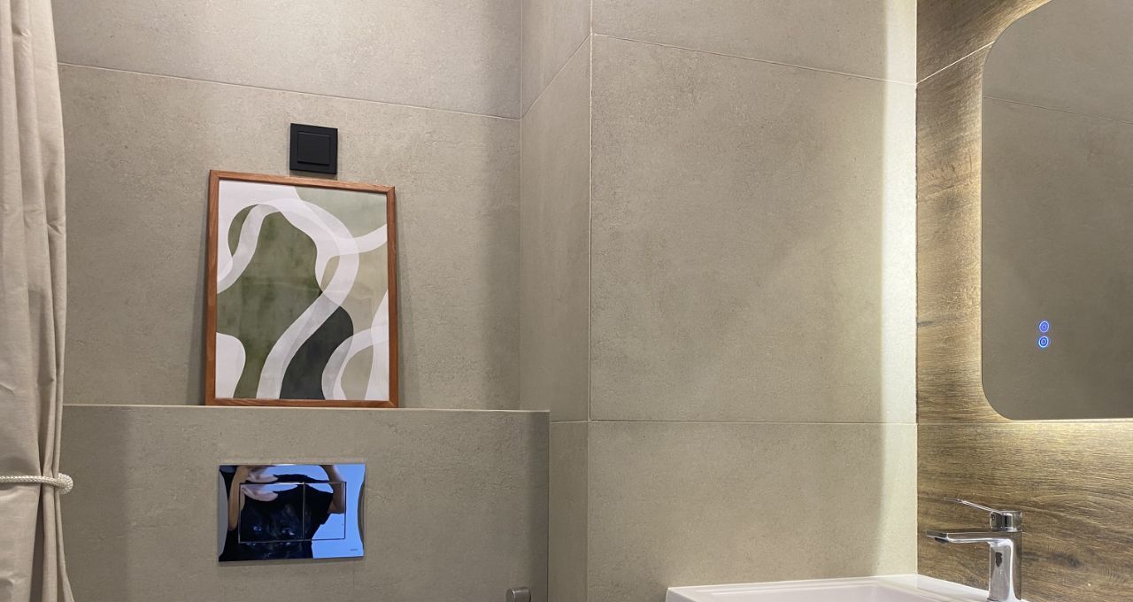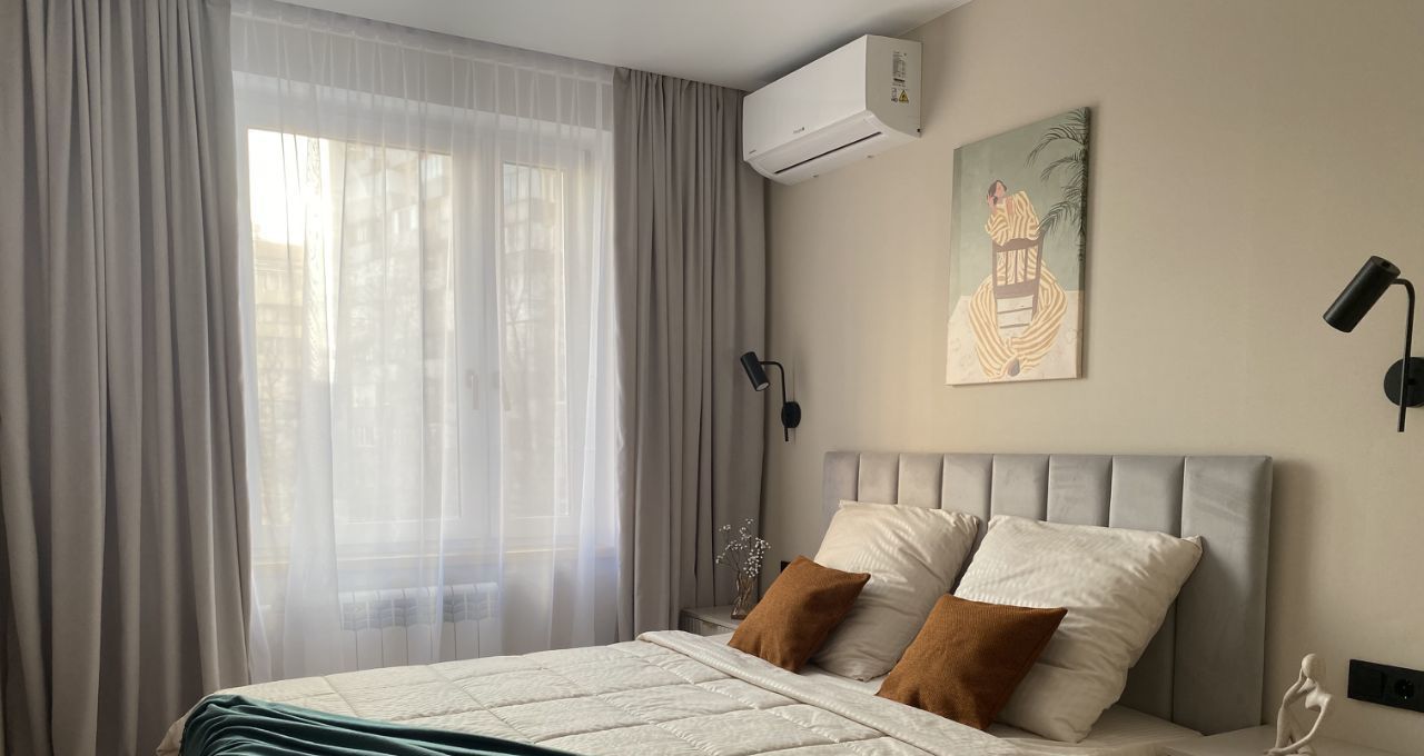 Современный качественный ремонт: Заменена вся электрика, трубы водоснабжения и канализации, собран эл. щиток и коллекторный узел, в санузле теплый пол, в мокрых зонах система от протечек Нептун, в каждой комнате кондиционер. На полу единым контуром уложен влагостойкий ламинат 33 класса (Alpine Floor- Norland), стены оформлены обоями итальянского дизайнера Andrea Rossi. В санузле керамогранит на полу и на стенах, ванна немецкого бренда Alex Baitler, раковина со столешницей из литьевого мрамора, инсталяция TECE, гигиенический душ, выводы под стиральную машину и бойлер. Кухня оснащена необходимой техникой: духовой шкаф, варочная панель, посудомойка (45 см) вытяжка, холодильник, кран с возможностью подключения фильтрованной воды. Фасады мдф, фартук из керамогранита. Много мест хранения: в большой комнате установлены зеркальные двери купе в гардеробную, в прихожей большой шкаф для верхней одежды, в спальне комод/место под шкаф. Продажа со всей техникой и мебелью: 2-х спальная кровать с подъемным механизмом, раскладной диван, тумба под тв, рабочий стол, комод, прикроватные тумбы, обеденная группа.