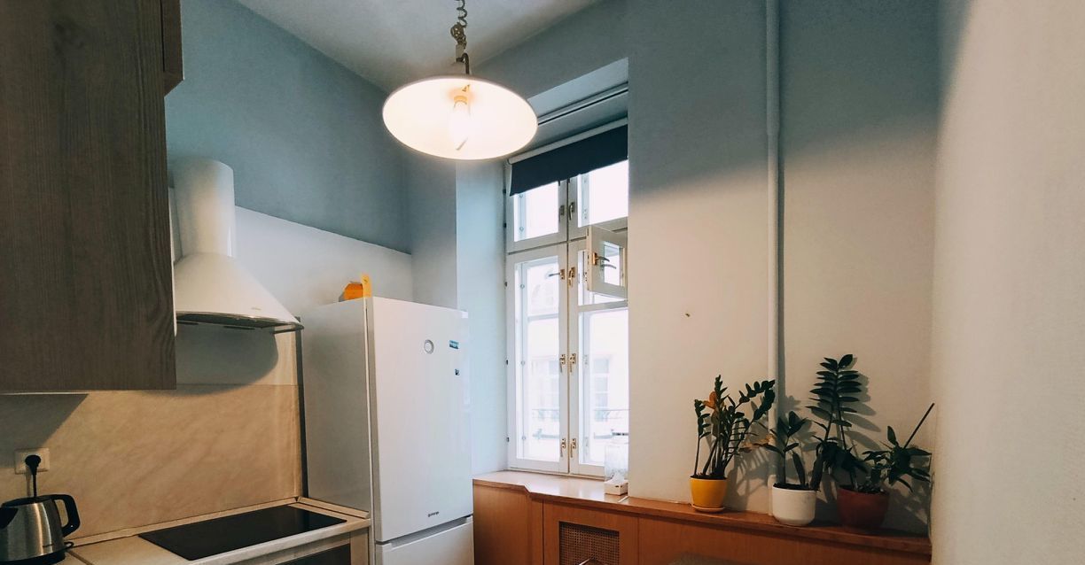 Спокойная и умиротворяющая квартира, в которой отдыхаешь. Потолки 3,5 м.