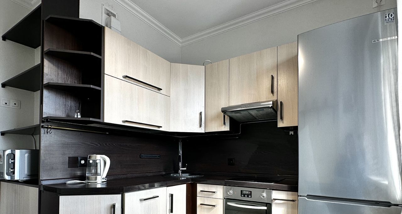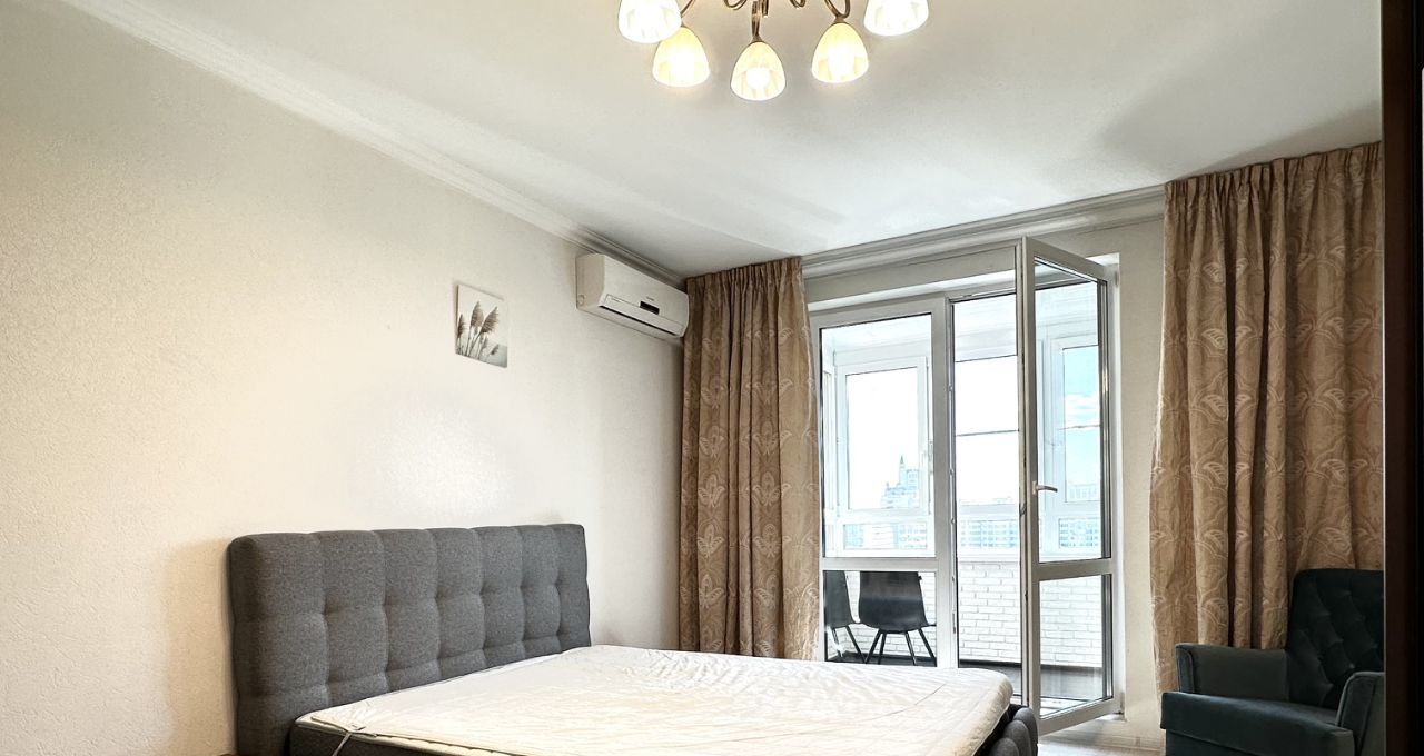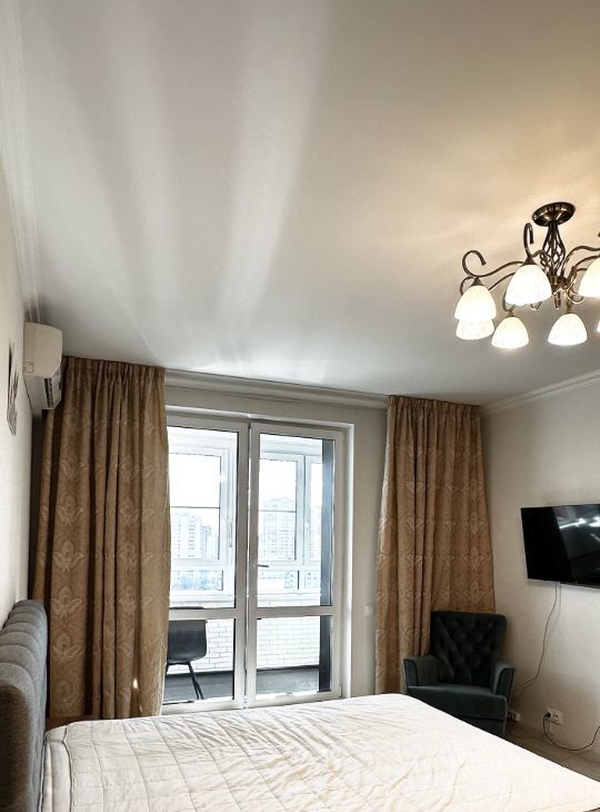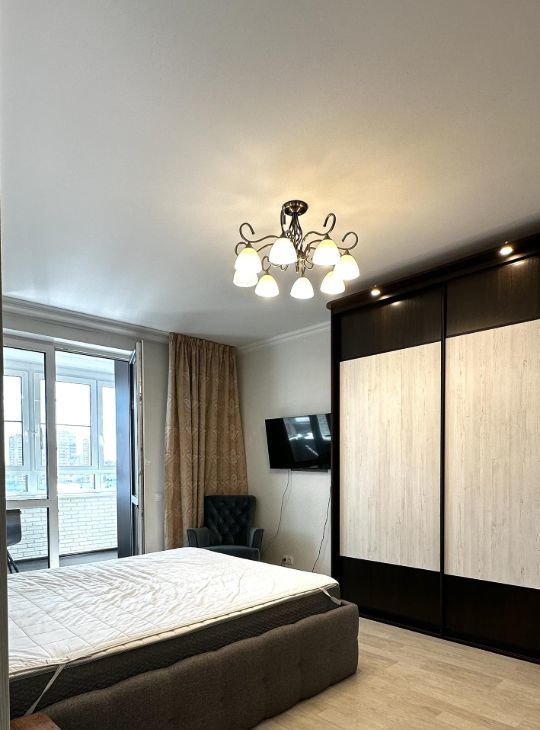Квартира с евроремонтом, полностью готова к проживанию. В комнатах и на кухне есть необходимая мебель. Кухня оборудована современной техникой, включая холодильник, кондиционер, телевизор и стиральную машину. Планировка включает одну лоджию, откуда открывается вид на улицу. Ванная комната оснащена ванной, что создаёт дополнительный комфорт.