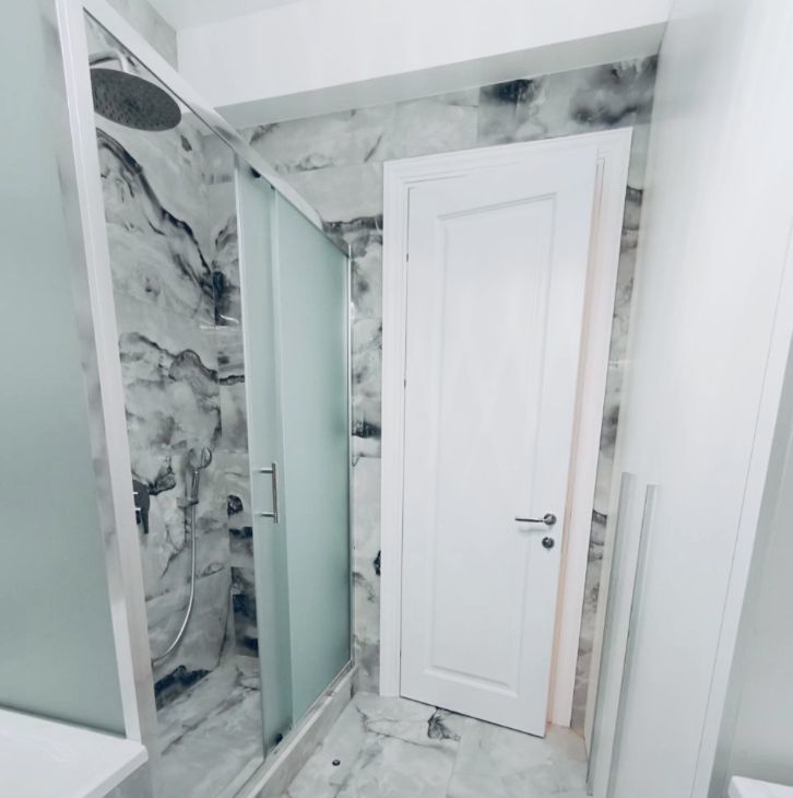 На полу натуральное дерево и плитка с подогревом. Есть вся необходимая мебель: двуспальная кровать с ортопедическим матрасом, раскладной диван, встроенные шкафы, обеденная группа, кухонный гарнитур. В кухне втроенная бытовая техника - посудомоечная машина, варочная панель, вытяжка, духовой шкаф, холодильник. Также есть стиральная машина, кондиционеры, домофон. В ванной комнате установлена и ванна, и душевая кабина.
