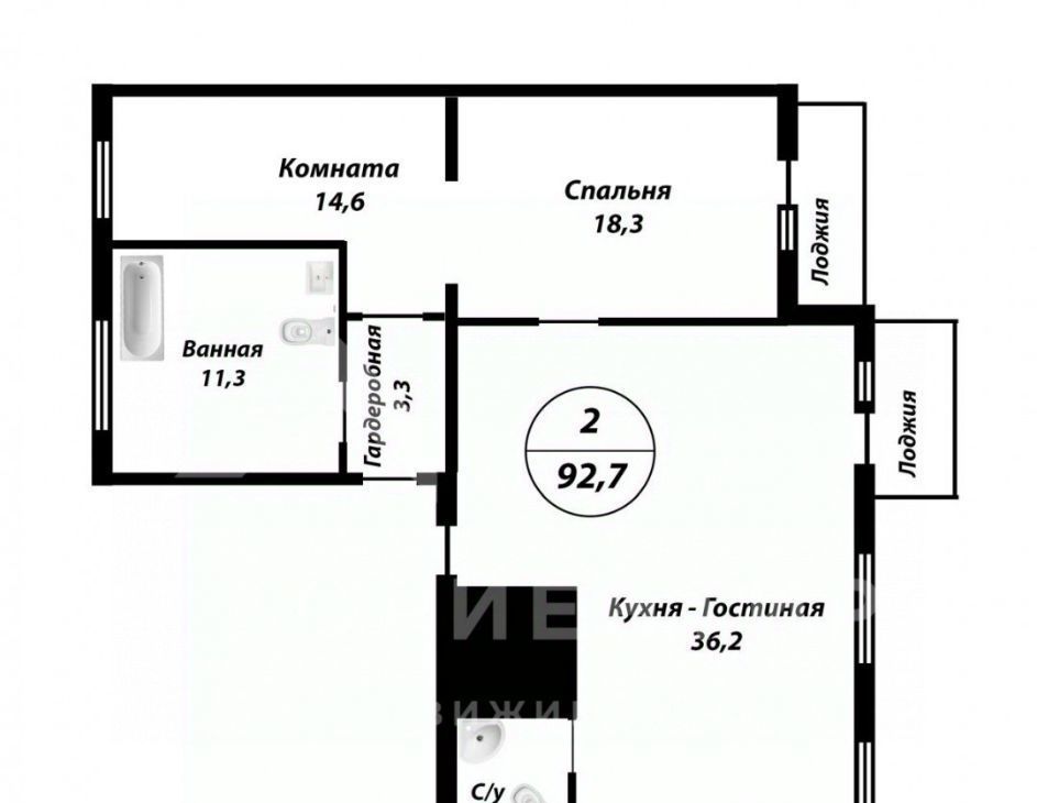 Просторная кухня-гостиная (36,2 м2), мастер-спальня, большая ванная комната с окном, гостевой санузел, гардероб с постирочной и смежная комната свободного назначения (детская, кабинет).