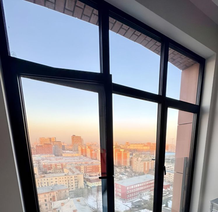 Утром мягкий свет — панорамные окна в пол выходят на восток. Вечером — спокойное небо и ощущение уюта.