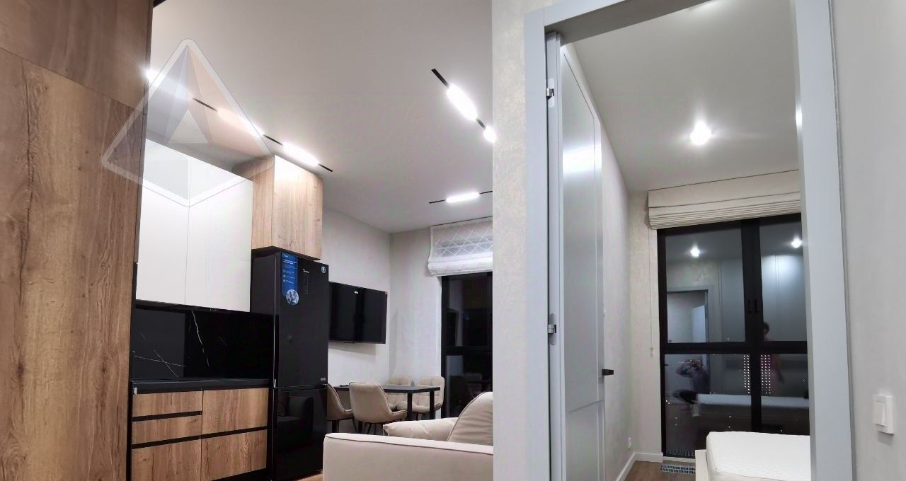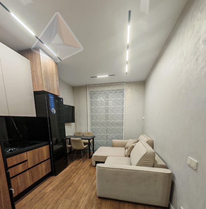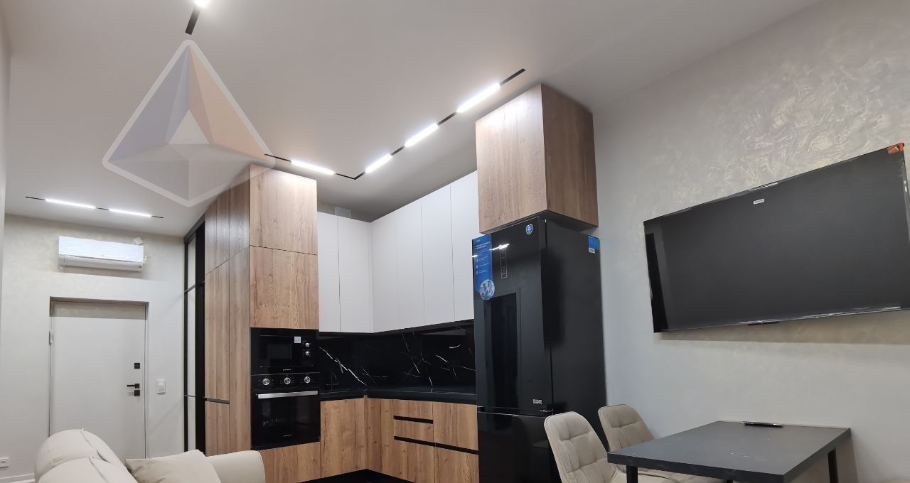 Просторная квартира 42 м² на 14 этаже (потолки 3 м): кухня 16 м², жилая площадь 20 м², изолированная планировка, совмещённый санузел с душевой, вид на улицу. Дизайнерский ремонт, новая мебель: двуспальная кровать с ортопедическим матрасом, диван с 2-спальными местами, гардеробная и множество систем хранения. Полный премиум-комплект техники: стиральная и сушильная машины, водонагреватель, центральный кондиционер, индукционная варочная панель, духовой шкаф, микроволновка, холодильник, посудомоечная машина, фильтр для воды, защита от протечек, телевизор, интернет — заезжай и живи.
