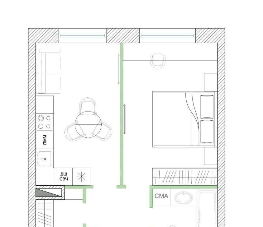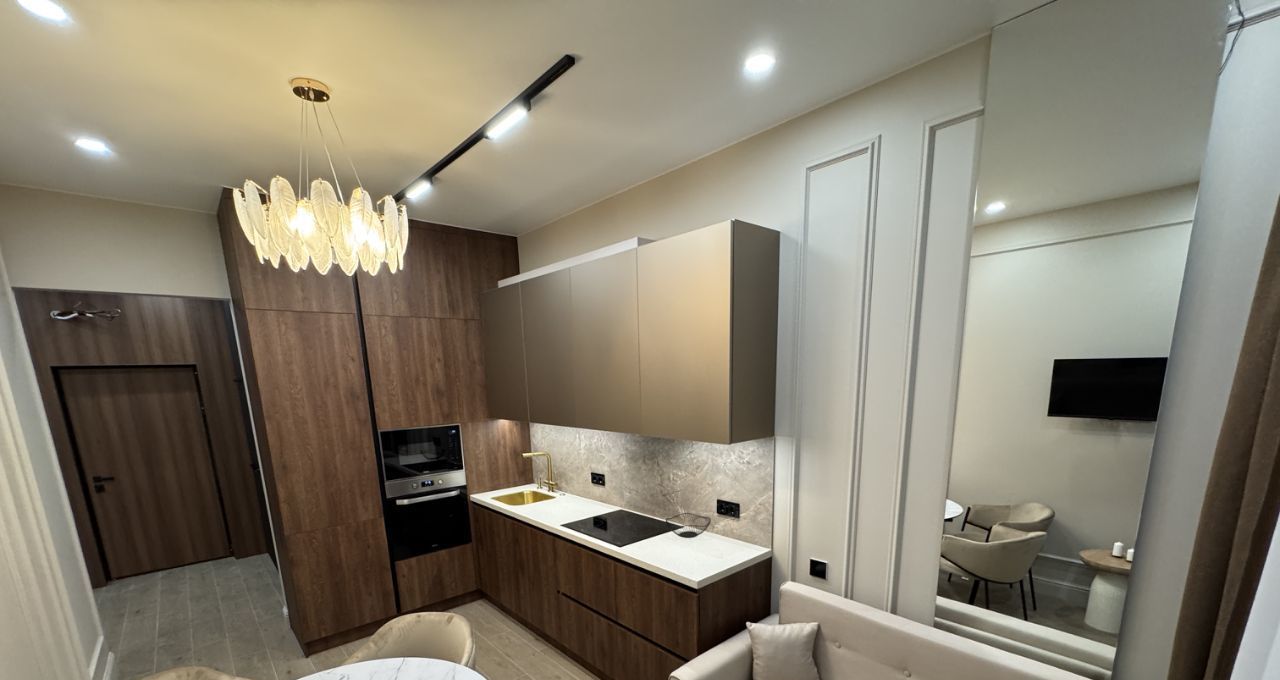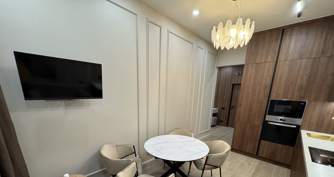 кухня совмещена с TVзоной, где есть раскладной диван.