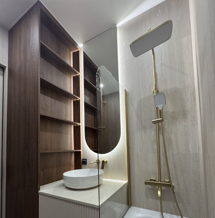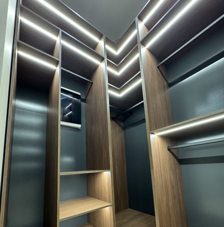 освещение с датчиками на движение (ванная, коридор, гардеробная).