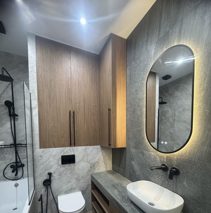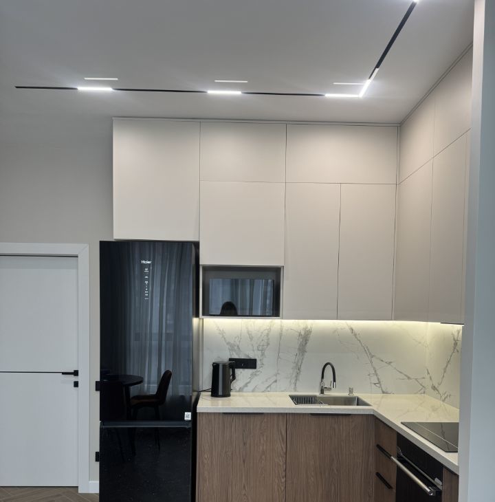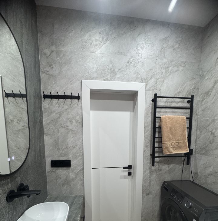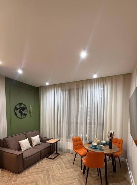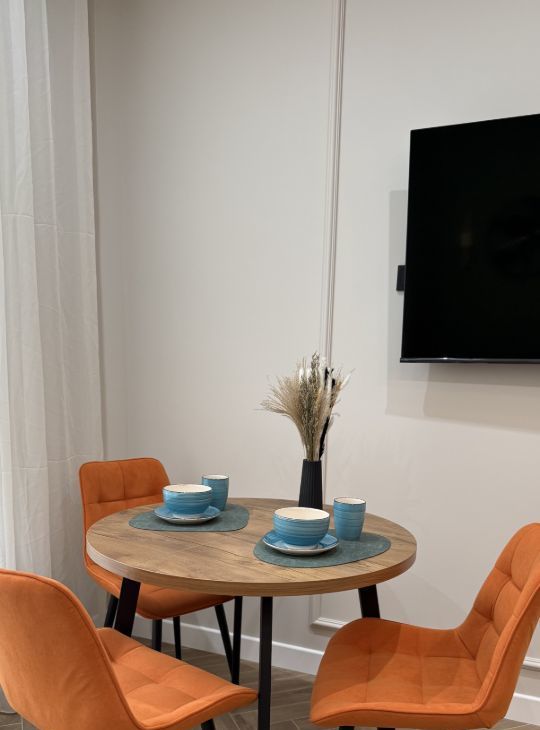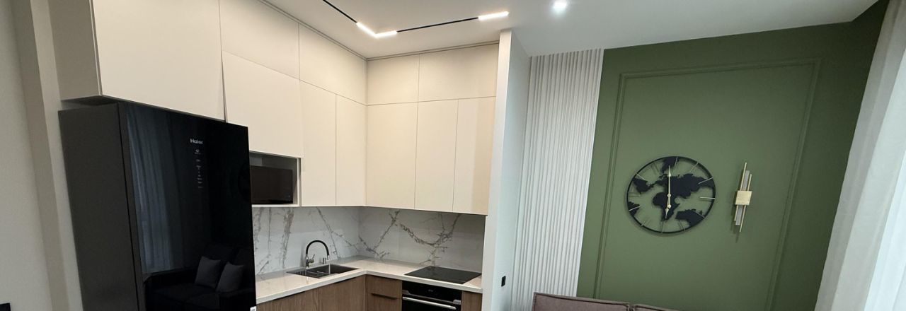 Ремонт выполнен современными экологичными материалами. Квартира оснащена всей необходимой техникой - Смарт телевидение, плита, духовка, микроволновая печь, холодильник, вытяжка, чайник, посудомойка, стиральная машина, гладильная доска с утюгом. Так же есть теплый пол.