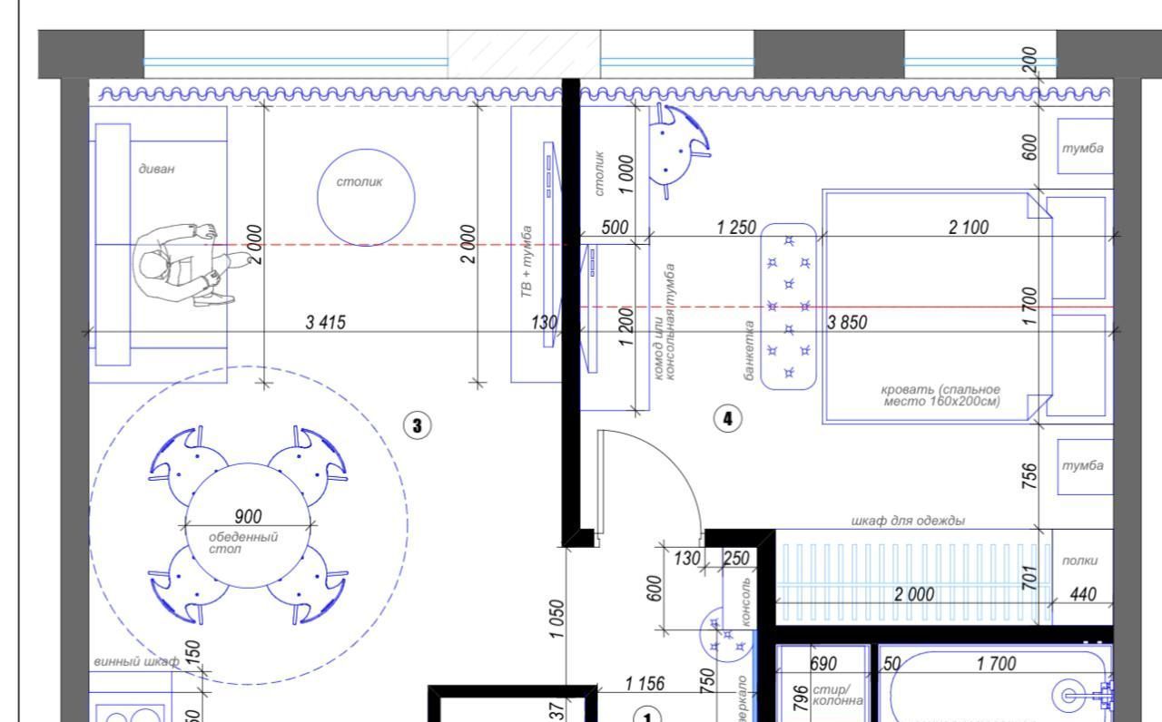 — обеденную зону — для приёмов пищи и лёгких завтраков,
