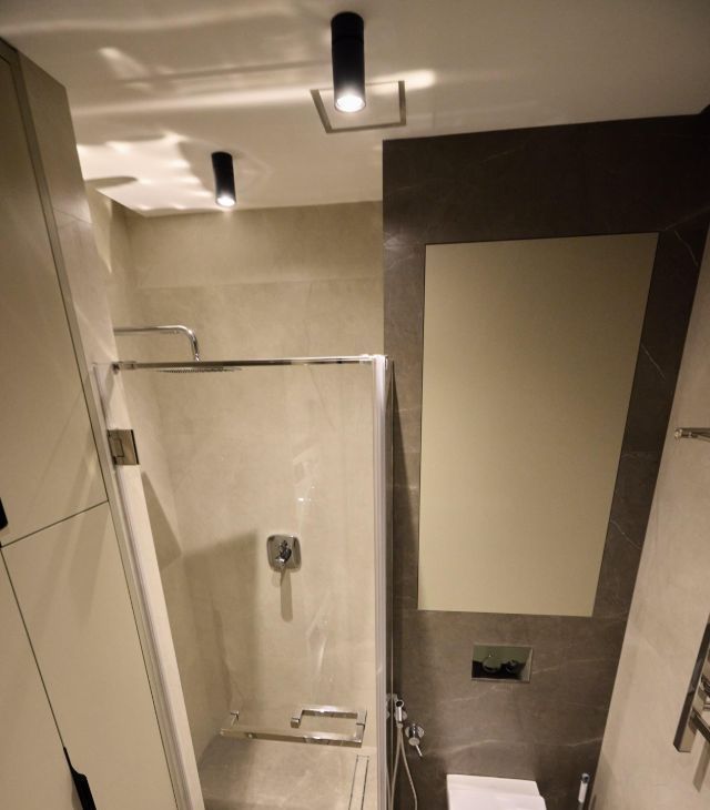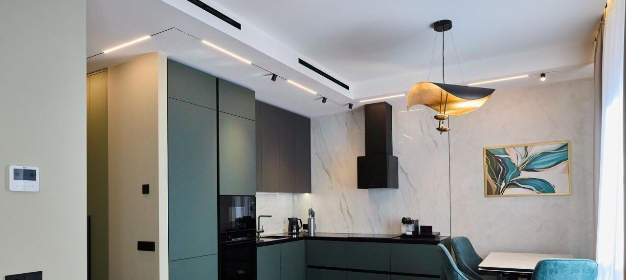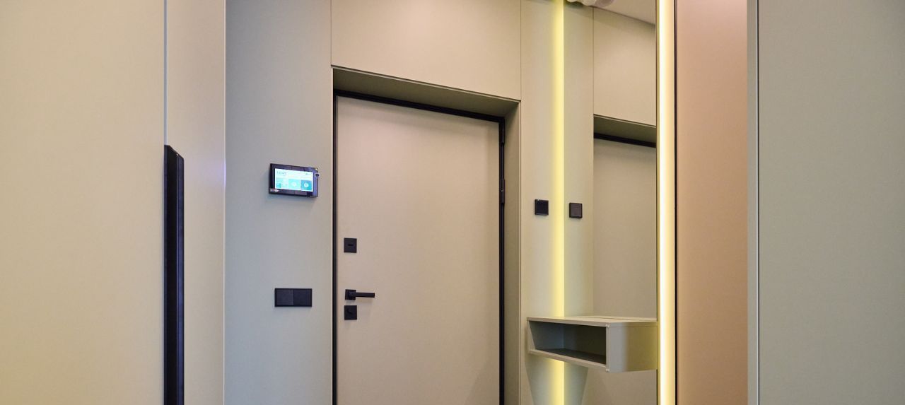 Изолированная спальная с телевизором LG и большим пространством для хранения домашних вещей под 2х спальной кроватью с ортопедическим матрацем и окнами с электроприводом ; просторная кухня гостиная 25 кв.м. ; теплые полы в санузле холле и кухне ; фильтр очистки водопроводной воды с опцией минирализация что позволяет полностью отказаться от покупки бутилированной воды ; скрытая встроенная в потолок система мультизональных блоков VRFкондиционирования от LG с щелевыми диффузорами ; оптоволоконный интернет ; видеодомофон BAS IP британия с коммутацией на все уличные входы во двор ; скрытый накопительный бойлер на 50 л ; опция тропический дождь в душевой ; удобный просторный (0,9м х 1,1м) душевой поддон с низким 50 мм порогом ; в сан узле все смесители и сан тех приборы немецкие трековое освещение щелевого монтажа в потолках гостиной и холла , карнизы для штор скрытого монтажа в потолок с подсветкой.