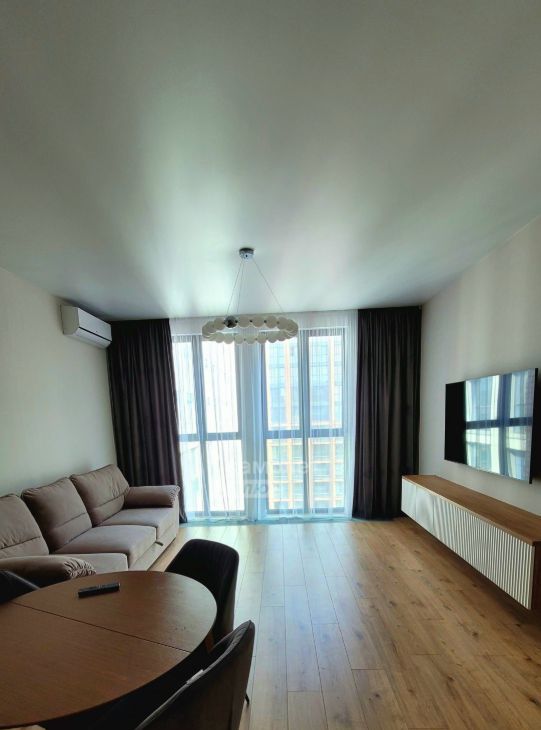 В квартире выполнен дизайнерский ремонт. Есть вся нeoбхoдимая для проживания мебель и техника - ТВ, варочная панель, духовой шкаф, посудомоечная машина, стиральная машина, 2 кондиционера. Просторная и функциональная гардеробная. Так же квартира оснащена теплым полом.