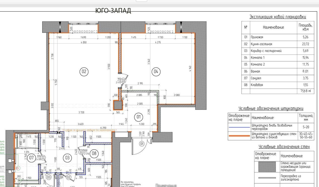 Комната и кухня-гостиная выходят на юго-запад. А спальня и ванная во двор на северо-восток. Ванная с окном. Из помещений Прихожая. Кухня-гостиная. Две спальни. Санузел с душевой кабиной. Санузел с ванной ( с окном). Кладовая со стеллажами. Постирочная.