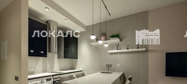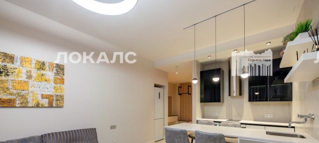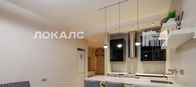 Арт. 124283539 Квартира выполнена в стиле минимализма. Большие полупанорамные окна расширяют пространство основной гостиной зоны (19 м2), совмещенной с кухонной (посудомоечная машина, стиральная машина с сушкой, дизайнерская вытяжка Elica, варочная панель, духовой шкаф с функцией СВЧ), оборудованной островным столом-барной стойкой из искусственного кварца, со встроенной мойкой и мебельным гарнитуром, выполненным на заказ по отдельному проекту.