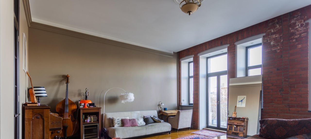 Стильная 2-комнатная квартира в кирпичном доме. 5 / 6 этаж. Спален: 1, санузлов: 1 раздельный. Общая площадь: 88 кв.м. Потолки 3.8 м. Ремонт в уникальном авторском стиле. Квартира с мебелью. Окна на 3 стороны света. Открытый вид и много света. В наличии: посудомоечная машина, холодильник, ванна. Высокоскоростной интернет.