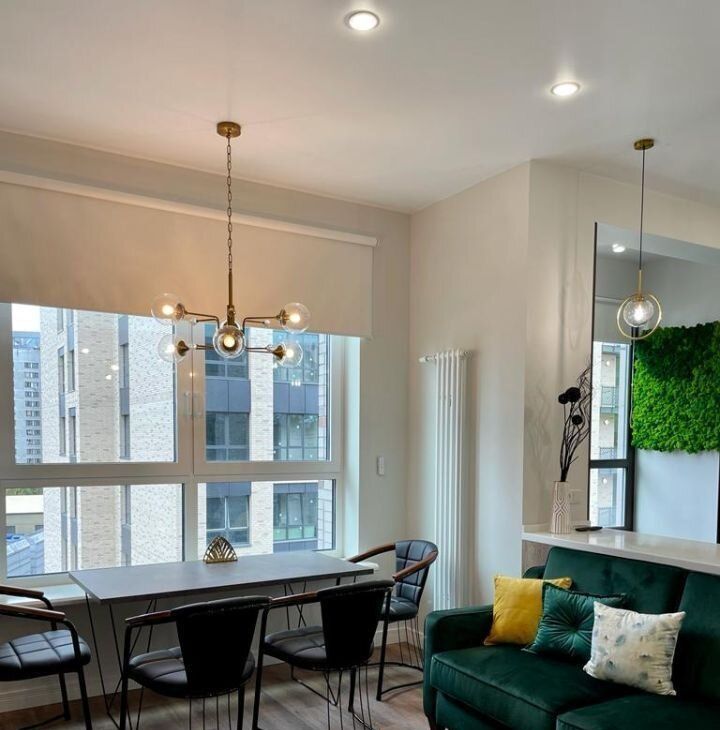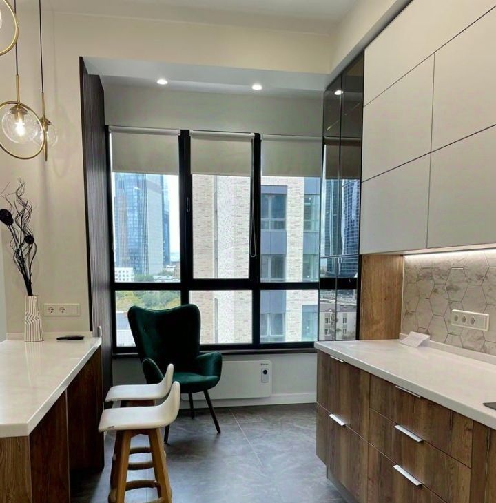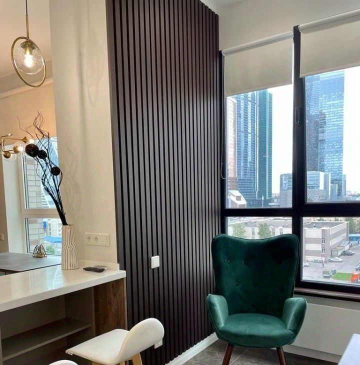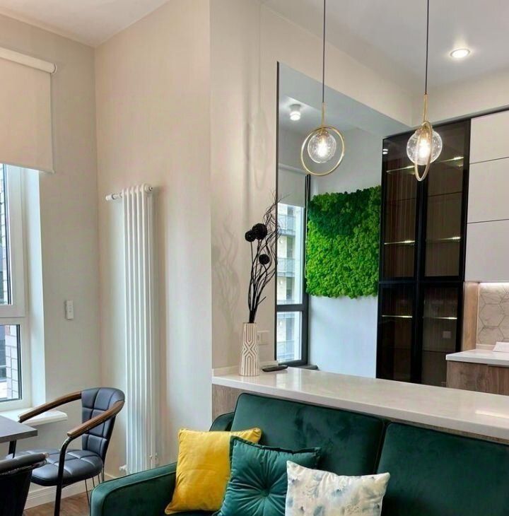 Квартира обставлена мебелью от итальянских дизайнеров, в зоне балкона размещается живая эко стена. Полный комплект бытовой техники, включая посудомоечную машину, духовой шкаф, СВЧ-печь. Дополнительно установлены датчики света, датчики протечки воды, электрические шторы BlackOut, световые приборы с пультом управления. Регулируемый тёплый пол во всей квартире. Система фильтрации воды. 2 шкафа для мест хранения.