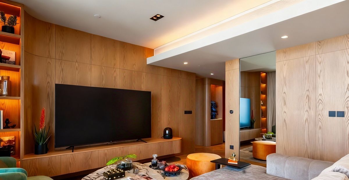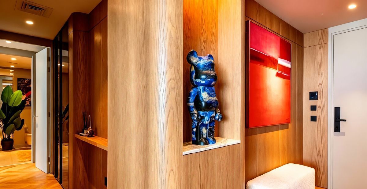в отделке широко использовано натуральное дерево — от напольных покрытий до декоративных элементов;