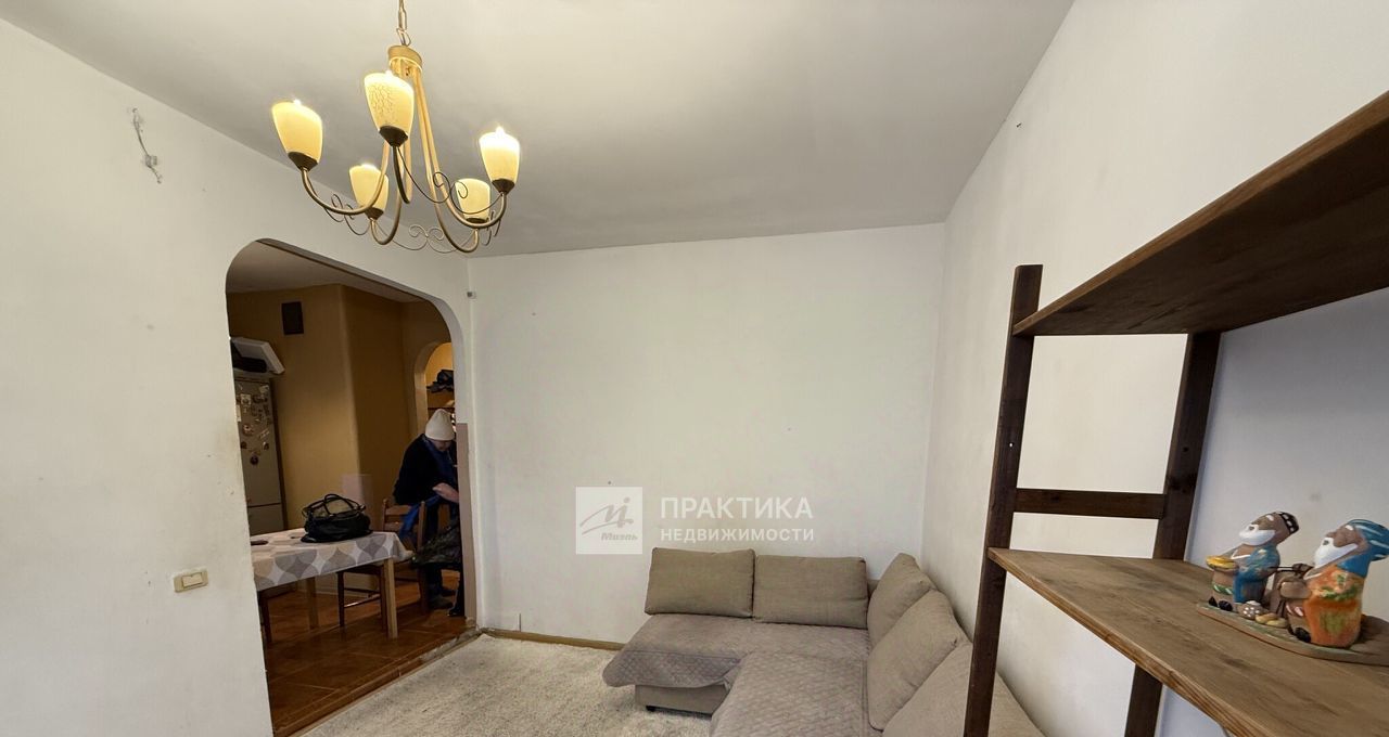 Из кухни проход во вторую комнату гостиную, где можно отдохнуть на диване и достаточно места для стола с компьютером или места для хобби;