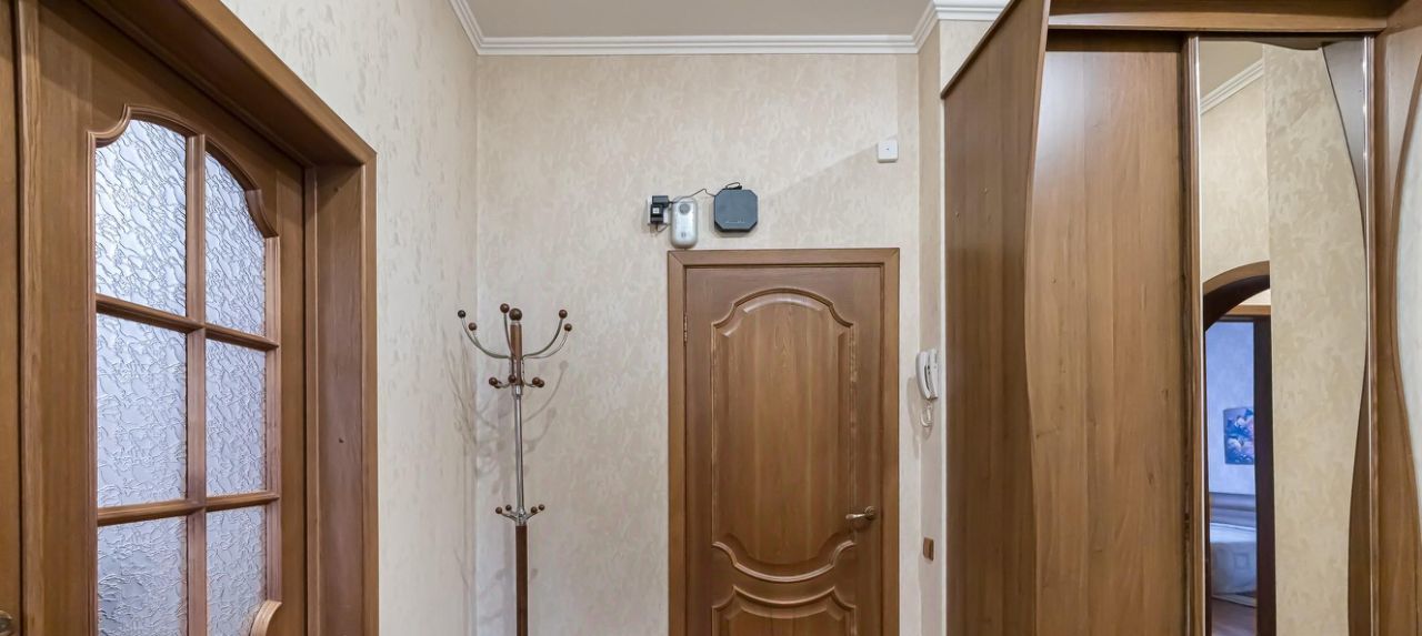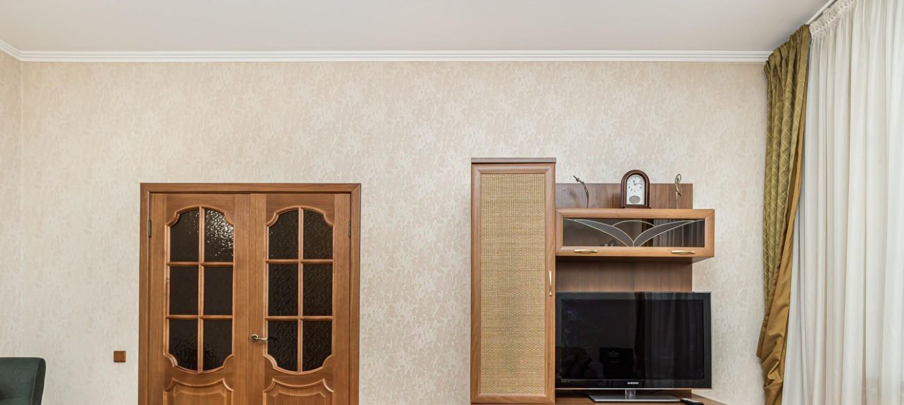В квартире имеется все нeобходимое для комфортного проживания. Кухонный гарнитур оснащен бытовой техникой: вытяжка, микроволновая печь, варочная панель, духовой шкаф. Холодильник, стиральная машина. В комнатах имеется 2х спальная кровать, прикроватные тумбы, шкаф для хранения вещей, раскладной диван, телевизор,письменный стол, шкаф для книг. В прихожей- вместительный шкаф для одежды и обуви.