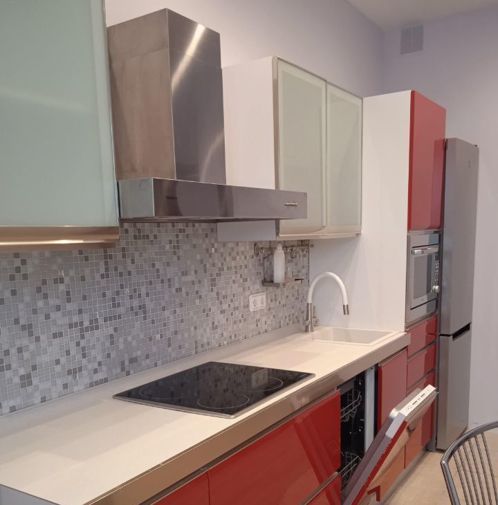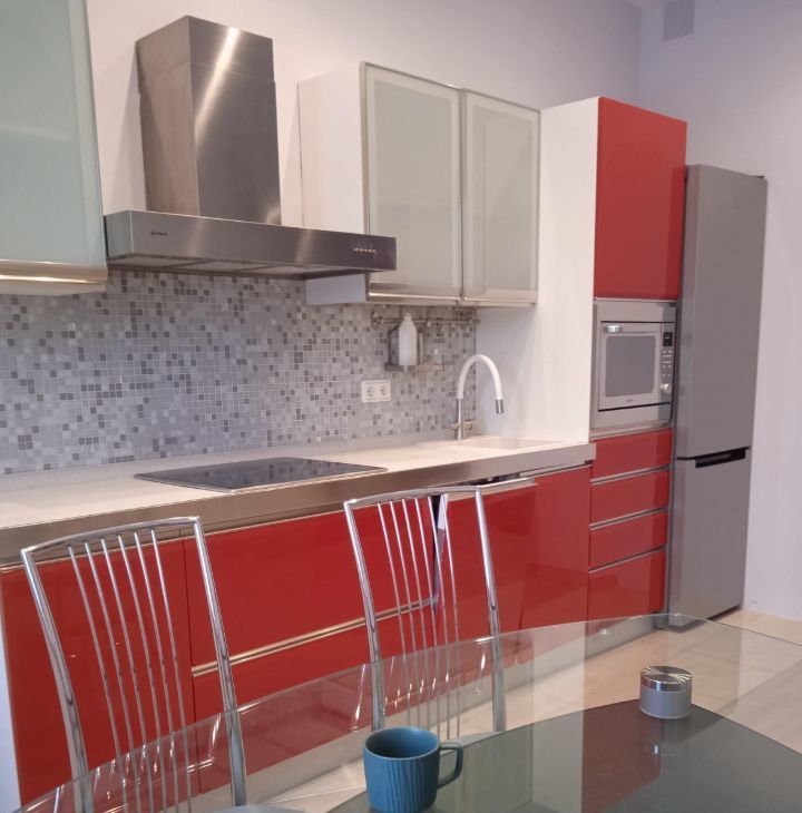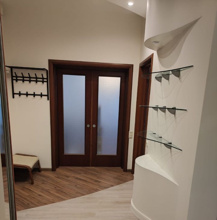 Квартира с дизайнерским ремонтом: современный интерьер, продуманные детали, качественные материалы. Уютная кухня площадью 15 кв. м оснащена всей необходимой техникой: холодильник, посудомоечная машина. В гостиной и спальне есть мебель для комфортного проживания: два новых раскладных дивана в гостиной. Санузел совмещенный, оборудован современной душевой кабиной. Для вашего удобства установлены кондиционер и стиральная машина. В доме есть мусоропровод и два пассажирских лифта.