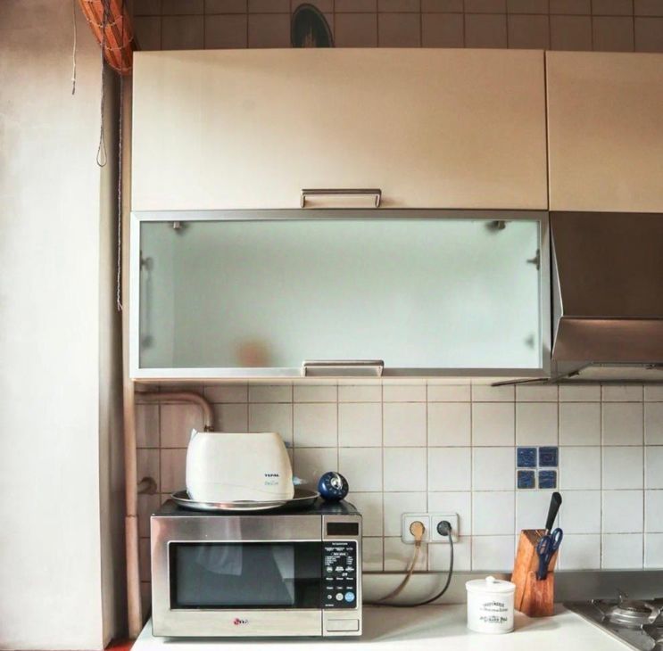 В квартире стиральная машина, кондиционеры, телевизор, холодильник, тостер, микроволновка.