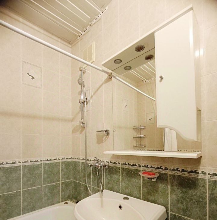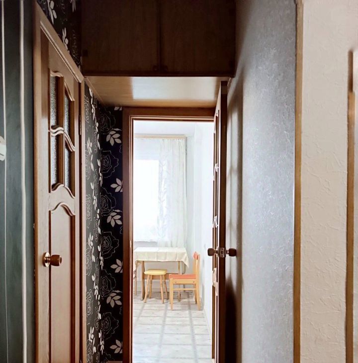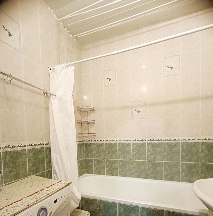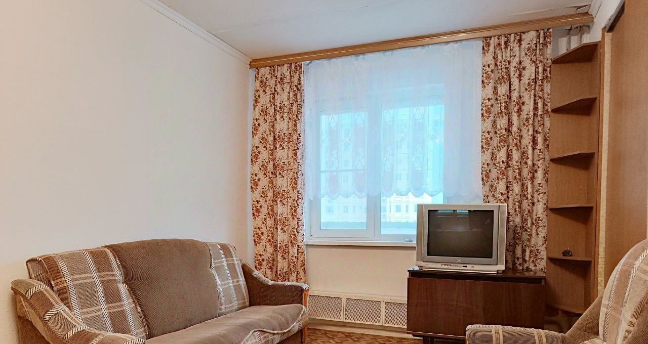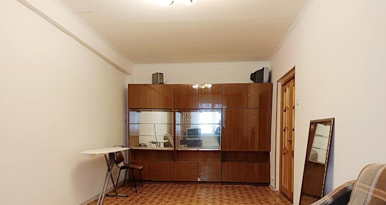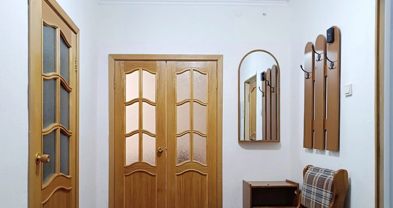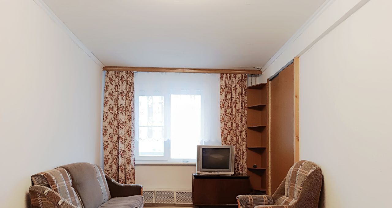 Внутри есть всё необходимое для старта: холодильник, стиральная машина, электроплита, вытяжка, телевизор и кухонный гарнитур. Из мебели — раскладной диван, кресло, шкафы и стол со стульями. Есть один нюанс — нет кровати. Но это не проблема, а возможность. Собственник готов купить её в счёт арендной платы, так что вы сможете выбрать то, что удобно именно вам.