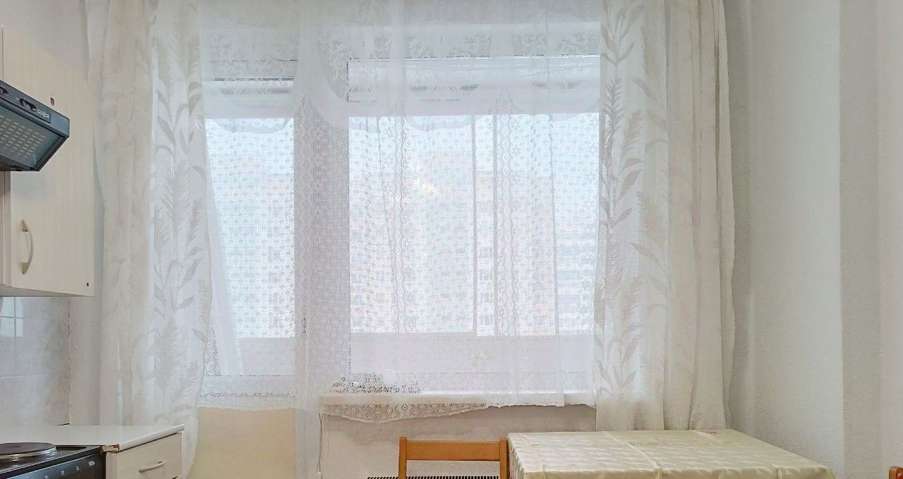Квартира просторная и чистая, на 11 этаже. Две изолированные комнаты — 14 и 24 м² — и уютная кухня 9 м². Большой 4-метровый балкон, на который можно выйти из кухни и из комнаты. Идеально для утреннего кофе.