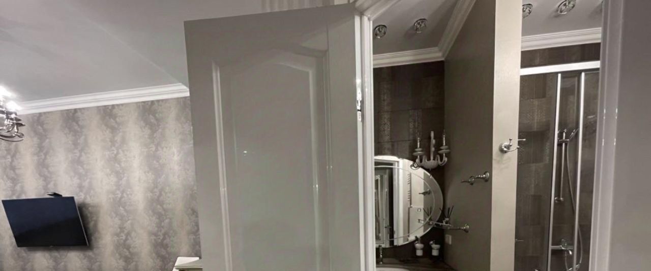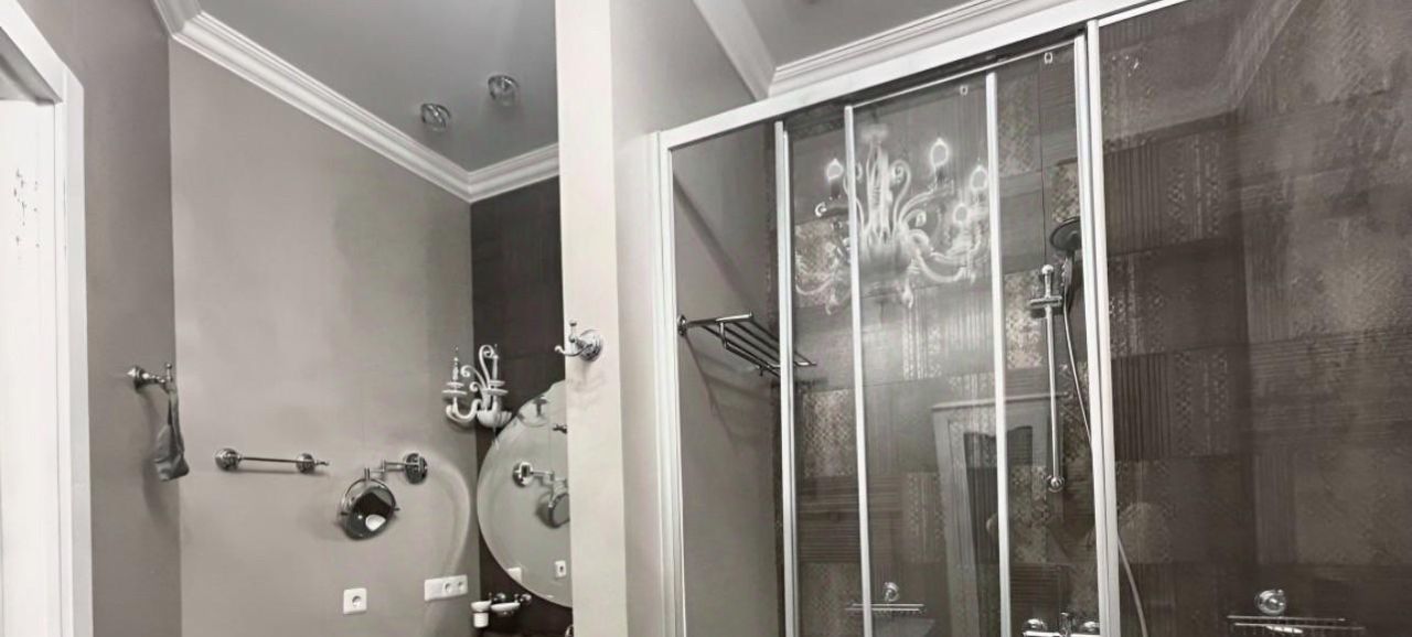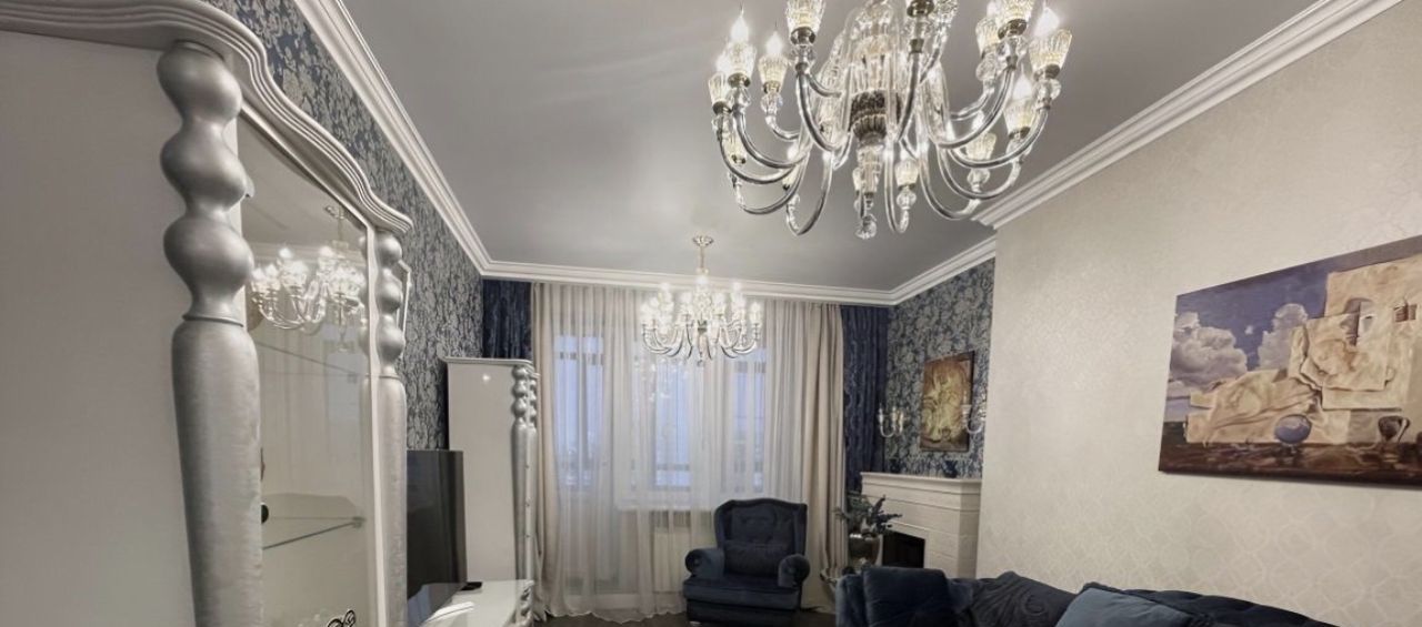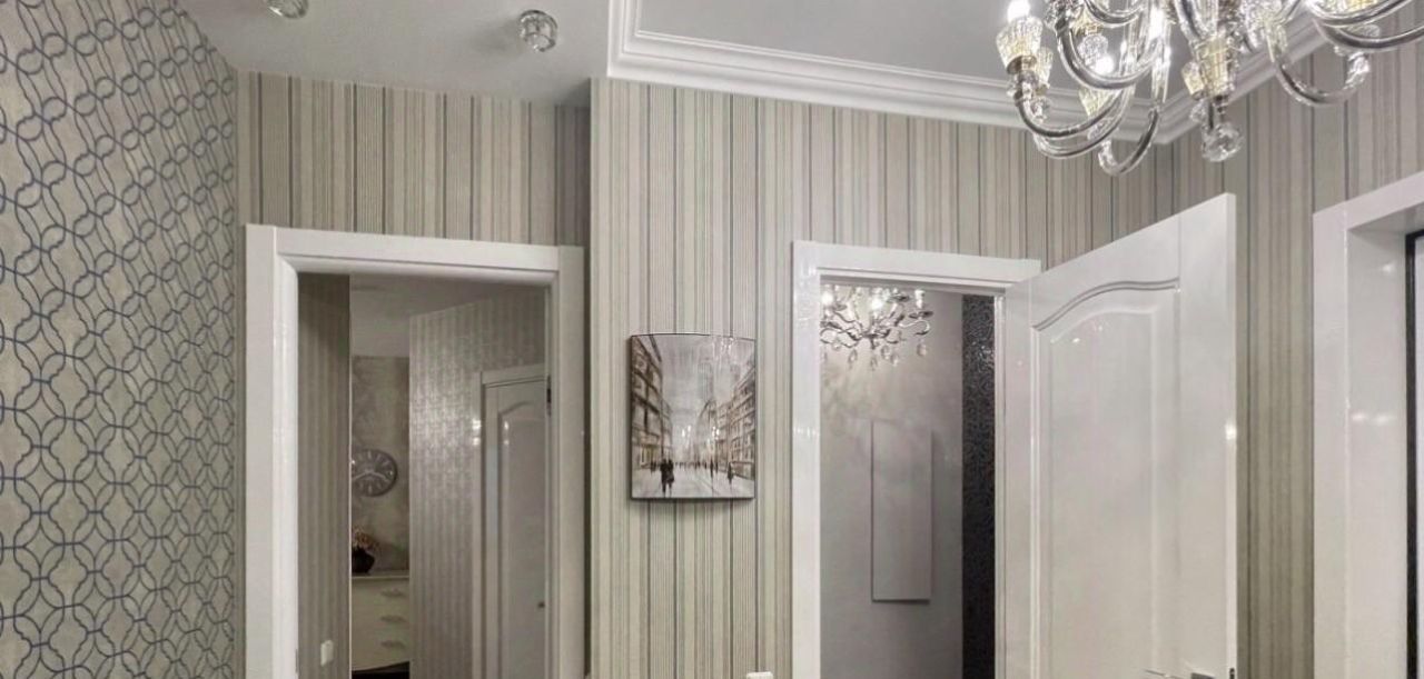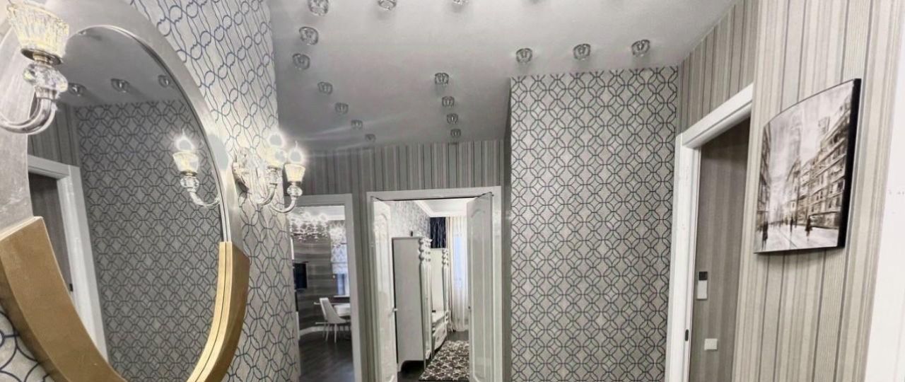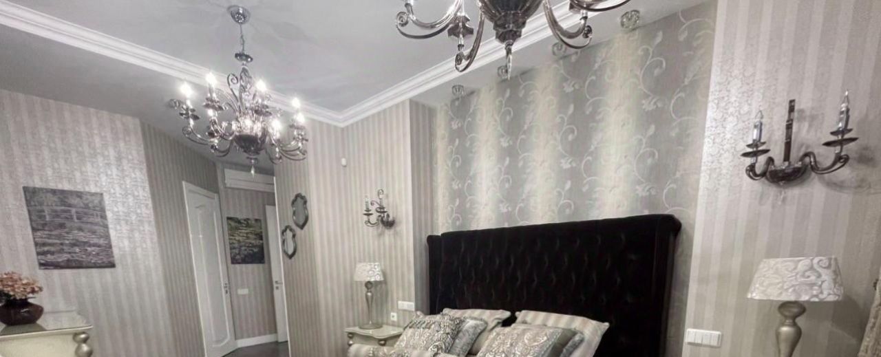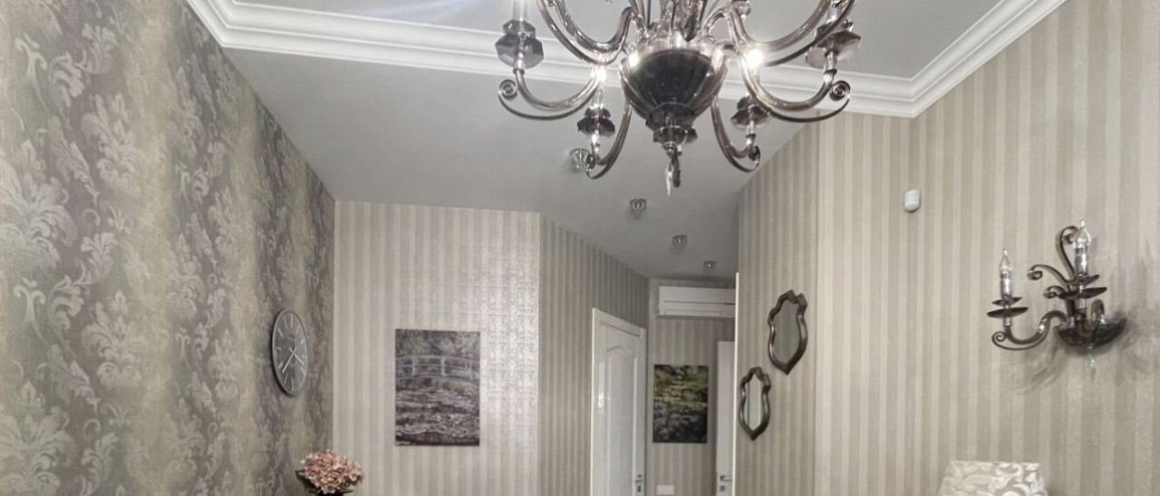 Квартира общей площадью 80 кв м., дорогой и эксклюзивный евроремонт. Великолепная планировка квартиры , все выполнено со всеми необходимыми целями для проживания, все продумано до мелочей : два санузла ( гостевой в коридоре и полноценный из спальни), гардеробная , большая кухня- столовая, гостиная с действующим камином и спальня .