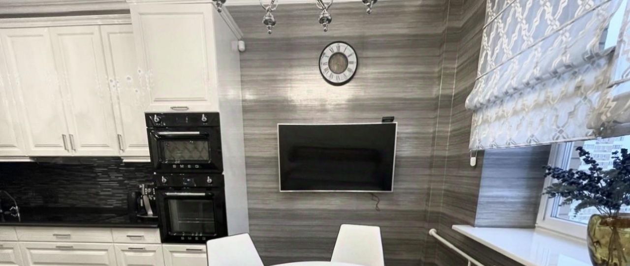 Встроенная кухня из натурального дерева( Чехия), столешница из натурального камня (Америка), вся бытовая техника Smeg, liebherr. Измельчитель для отходов, фильтр для воды( 5 -ти ступ), есть вся необходимая посуда, мебель Италия, Испания.