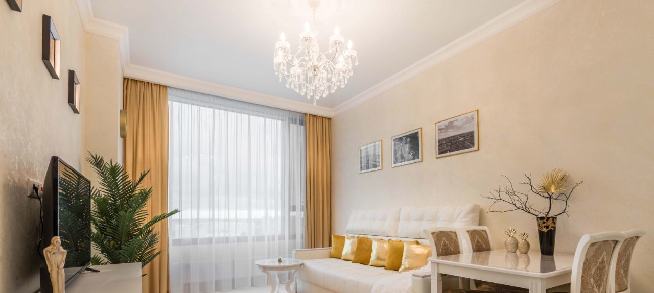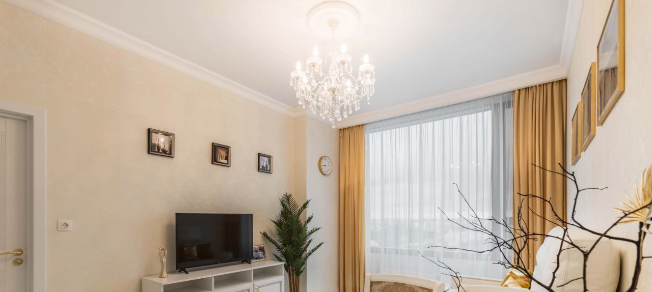 Кухня-гостиная с панорамным видом на Парк Олимпийской деревни. Квартира полностью меблирована, укомплектована всей необходимой бытовой техникой, двухкамерным холодильником ( с полным ноу фрост), варочной панелью SCOOTT CERAM, духовкой. Мебель массив. Стол 70см*1м10см (раскладывается 1м80см). Диван из натуральной кож и на 2 спальных места, телевизор с диагональю 42 дюйма. Уютная спальня с телевизором 4К, кровать 160х200см; просторный санузел с удобным туалетным столиком, стиральной машиной, безободковым унитазом. Глубокая ванна с душем. Установлена защита от протечек Нептун (зона кухни и санузла). Две гардеробные комнаты. Кондиционер.