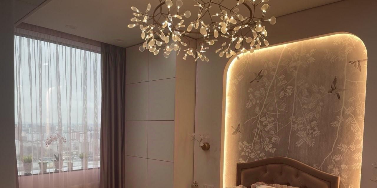 Квартира расположена на 31 этаже с панорамными видами на долину реки Раменка, Мосфильмовскую улицу и закаты.