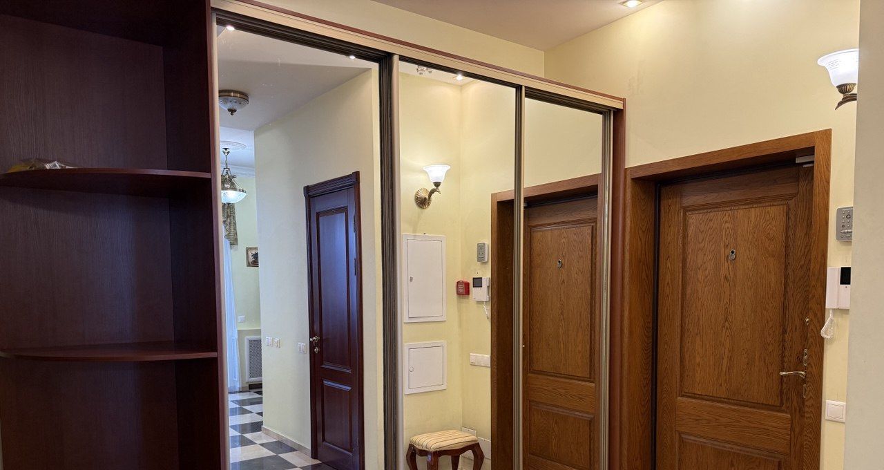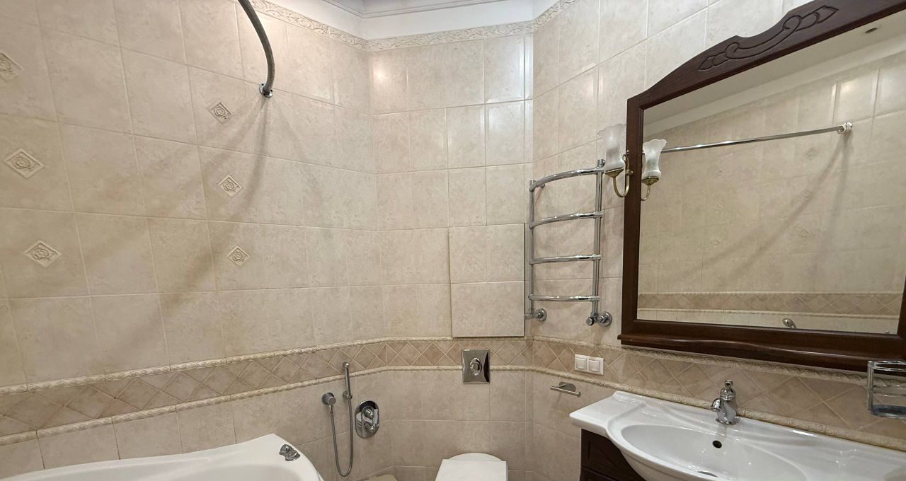 Квартира оборудована бытовой техникой Bosch (холодильник, стиральная машина, духовка, микроволновка, посудомойка), бойлер, теплые полы. Выполнен качественный ремонт, мебель из натурального дерева, паркет. Спальный гарнитур из массива дуба, матрас 180х200.