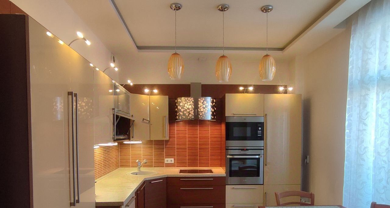 Из техники: встроенный холодильник с морозильным отделением, варочная поверхность, вытяжка, духовой шкаф, микроволновая печь, посудомоечная машина, стиральная машина, бойлер, кондиционер. Вся техника европейских брендов (Германия, Великобритания).